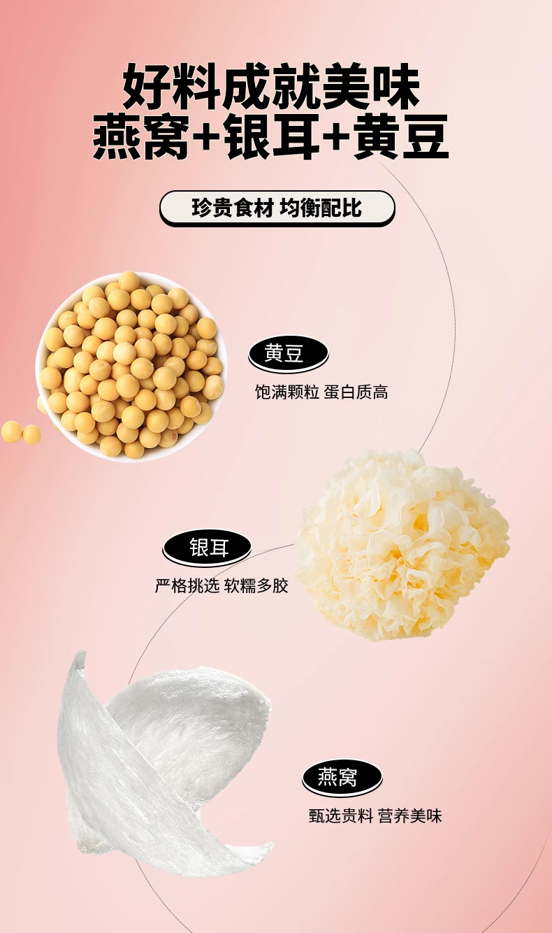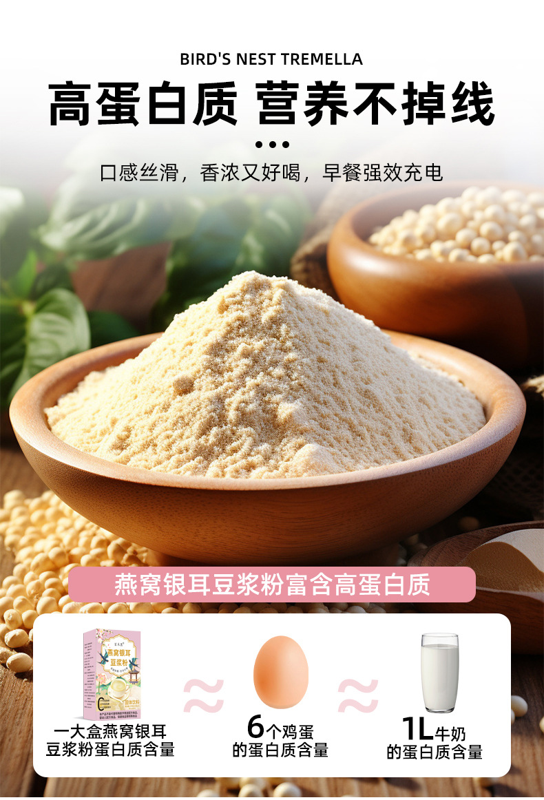 【营养美味!燕窝银耳豆浆粉】原汁原味,口感丝滑,香浓好喝,小小一杯大营养!健康早餐代餐营养鲜纯每日奶粉