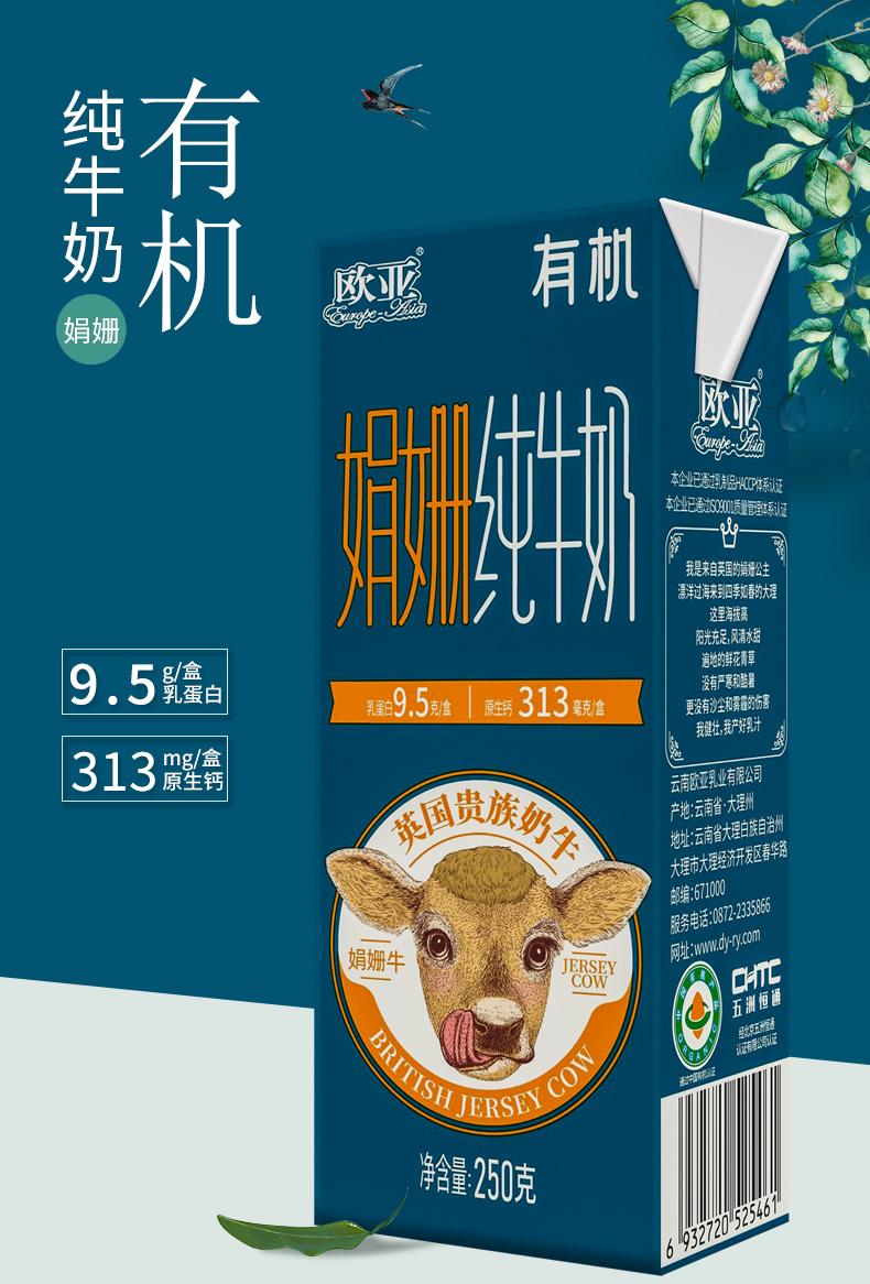 【娟姗牛奶】2箱装 欧亚娟姗有机纯牛奶250g*10盒/箱 乳制品