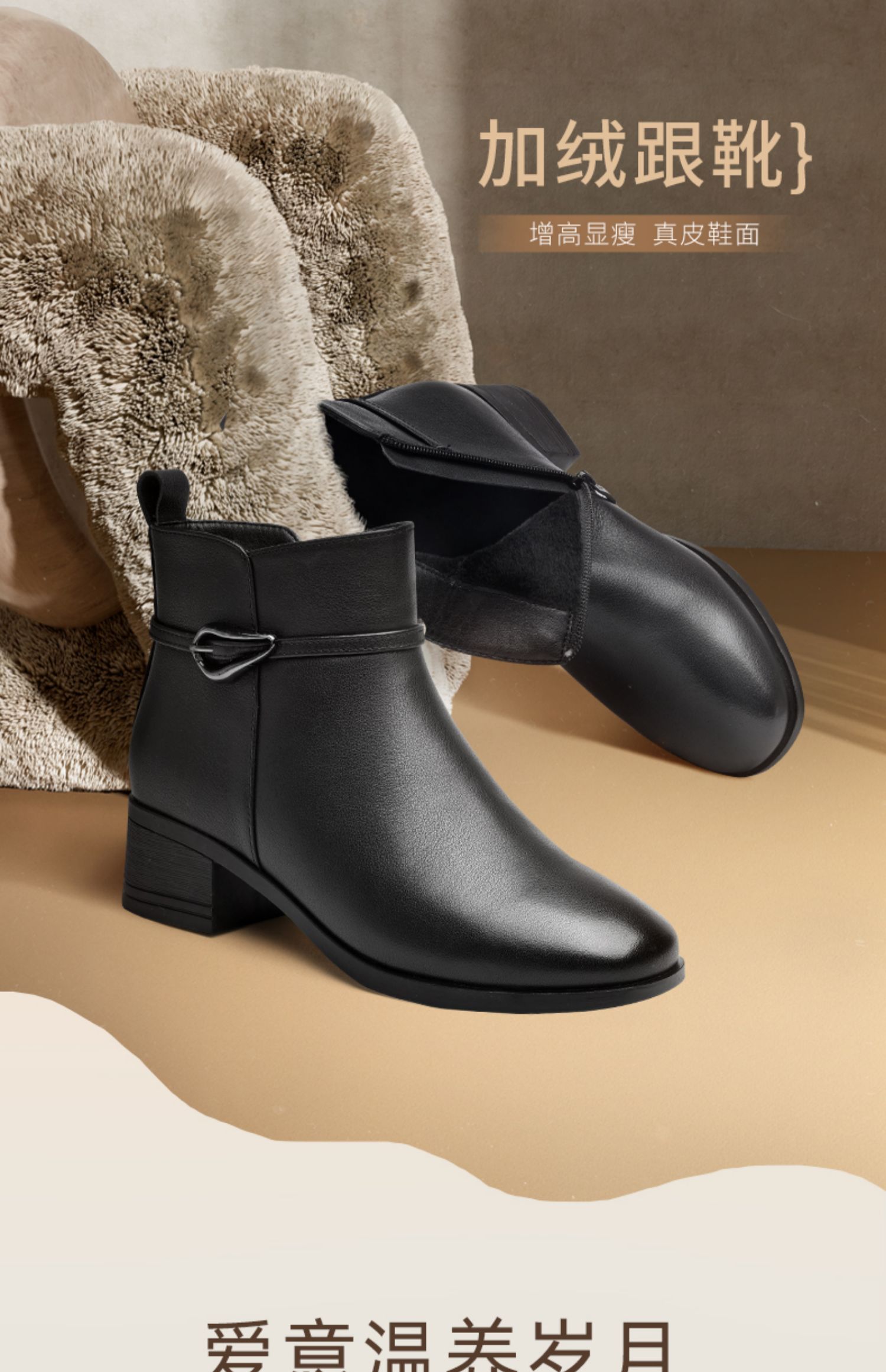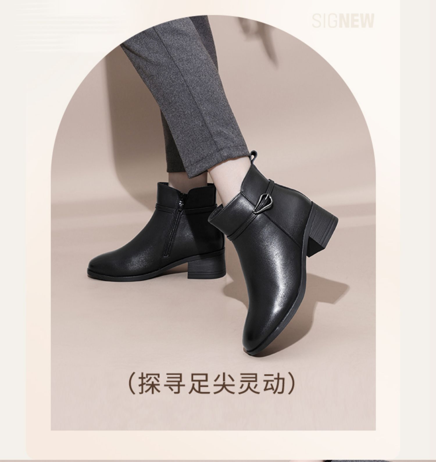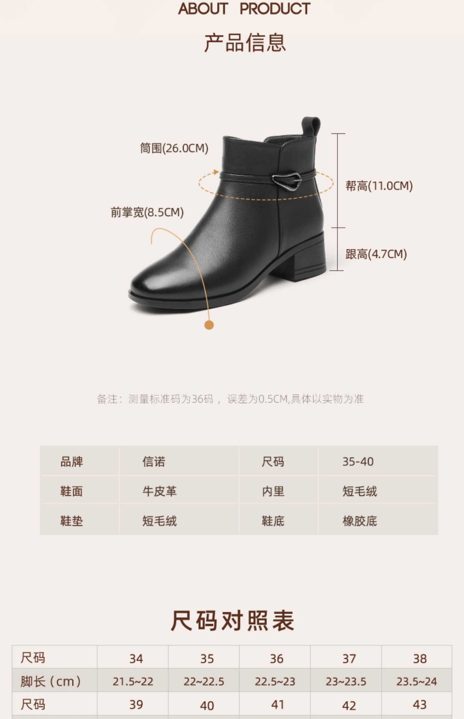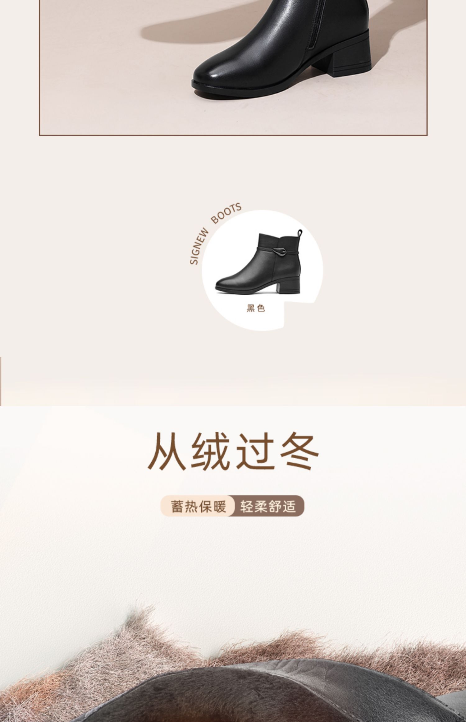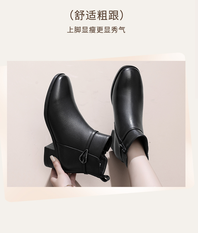 信诺真皮女鞋2024新款冬季加绒保暖短靴粗跟时装女靴中年妈妈棉鞋M519-11D
