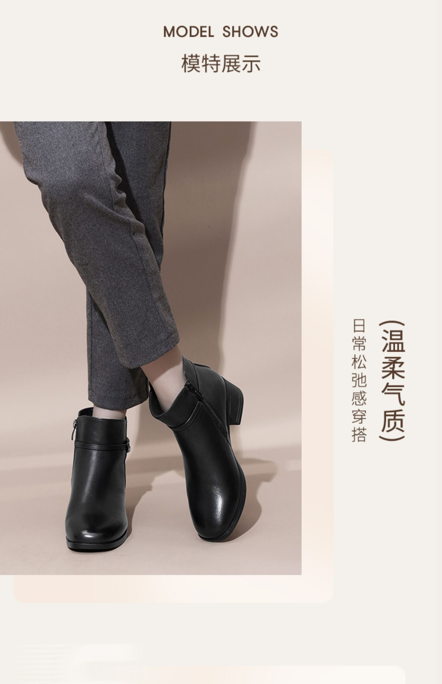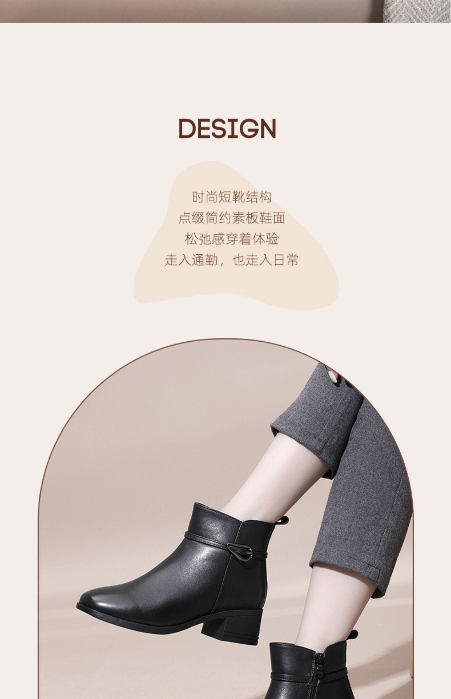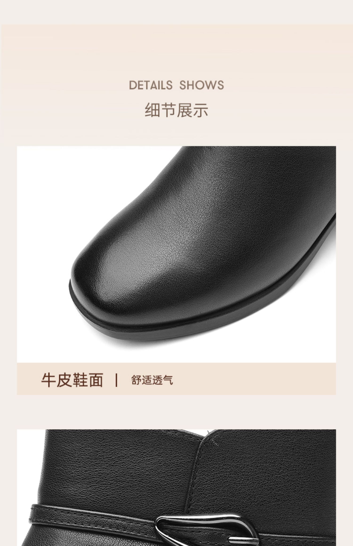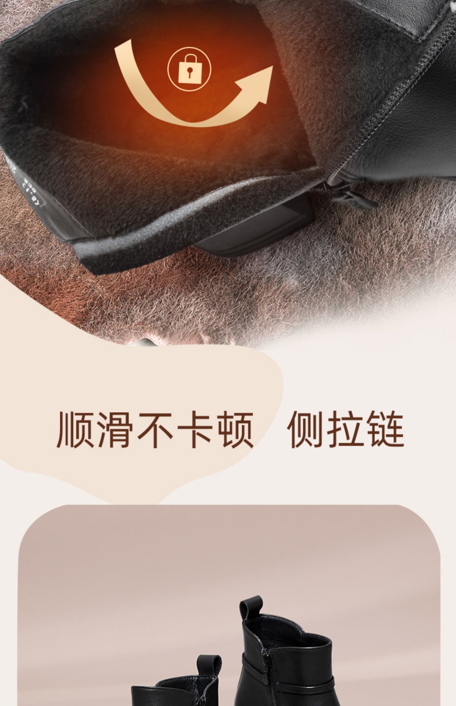信诺真皮女鞋2024新款冬季加绒保暖短靴粗跟时装女靴中年妈妈棉鞋M519-11D