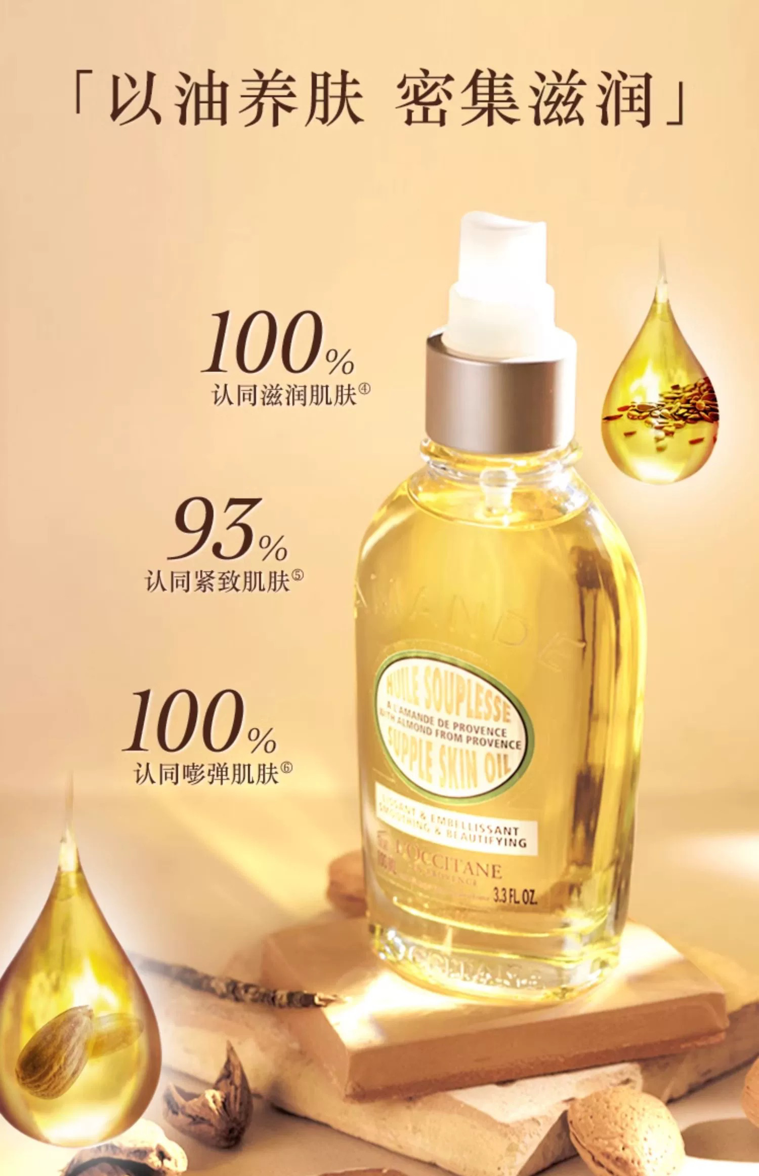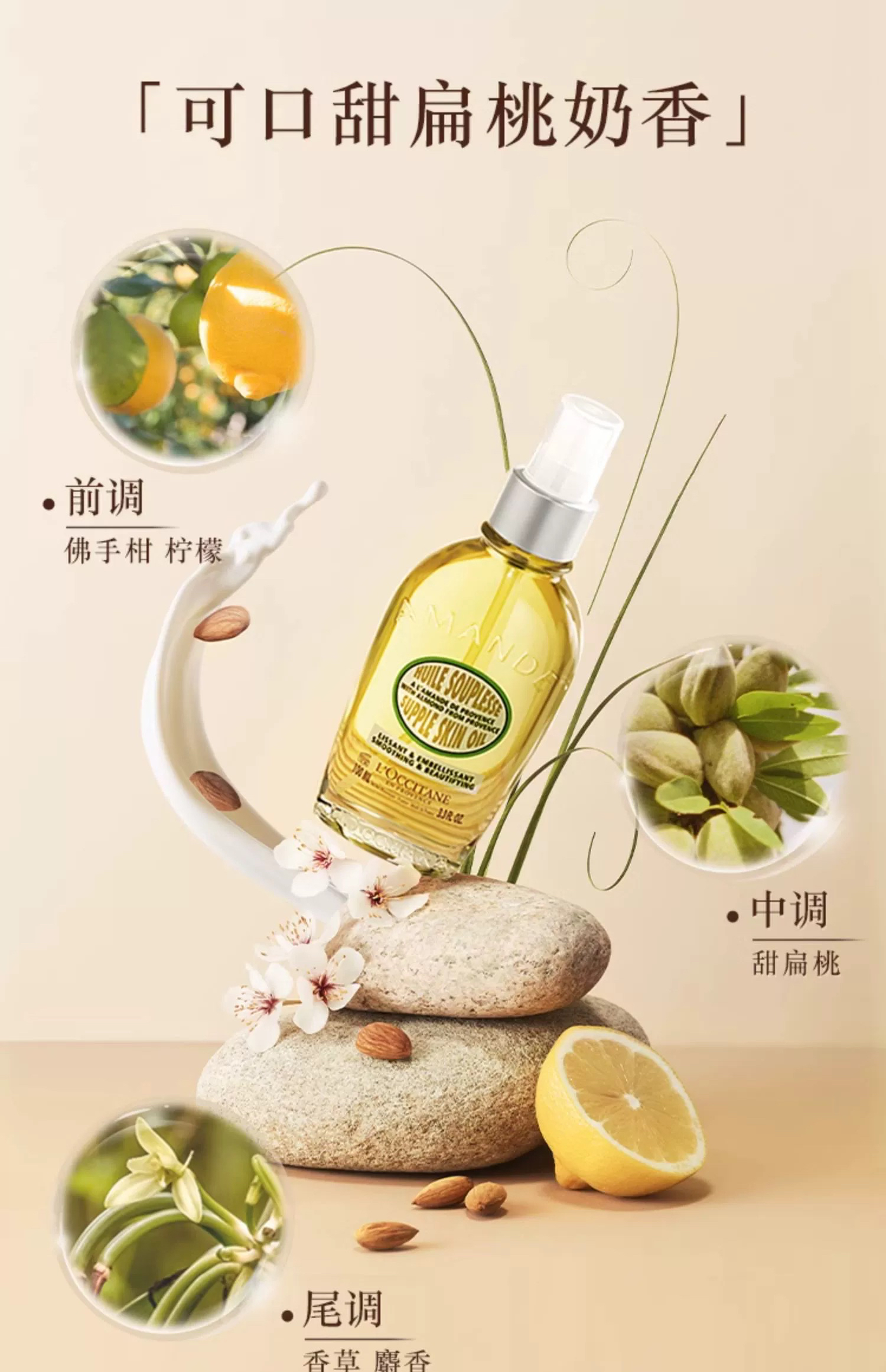 法国 L'occitane欧舒丹 甜扁桃/杏仁保湿滋润身体按摩精华油 100ml