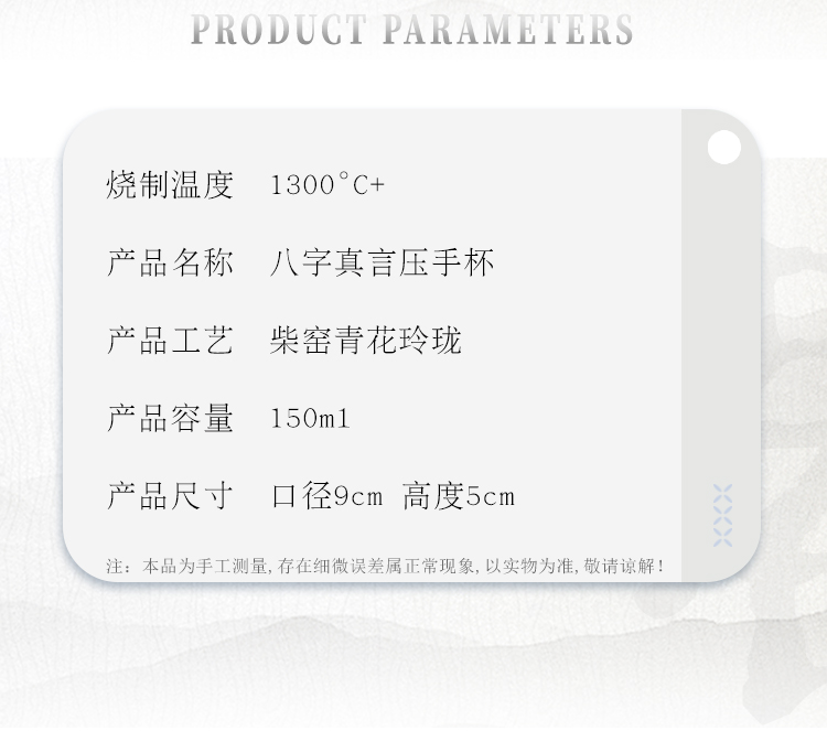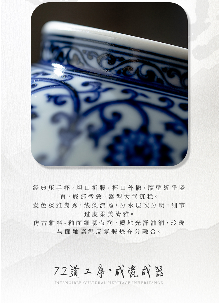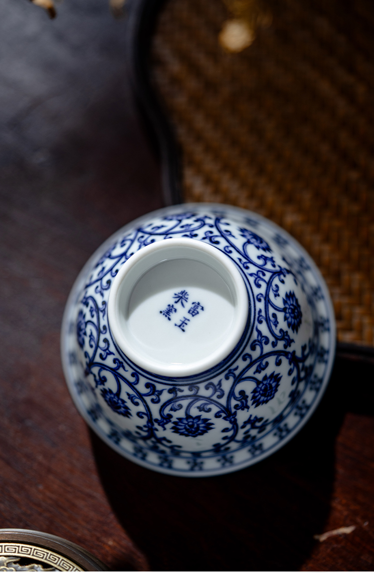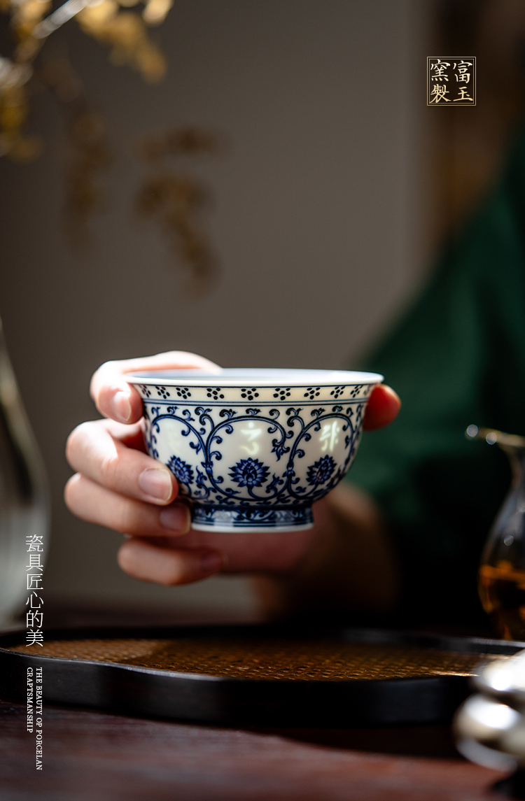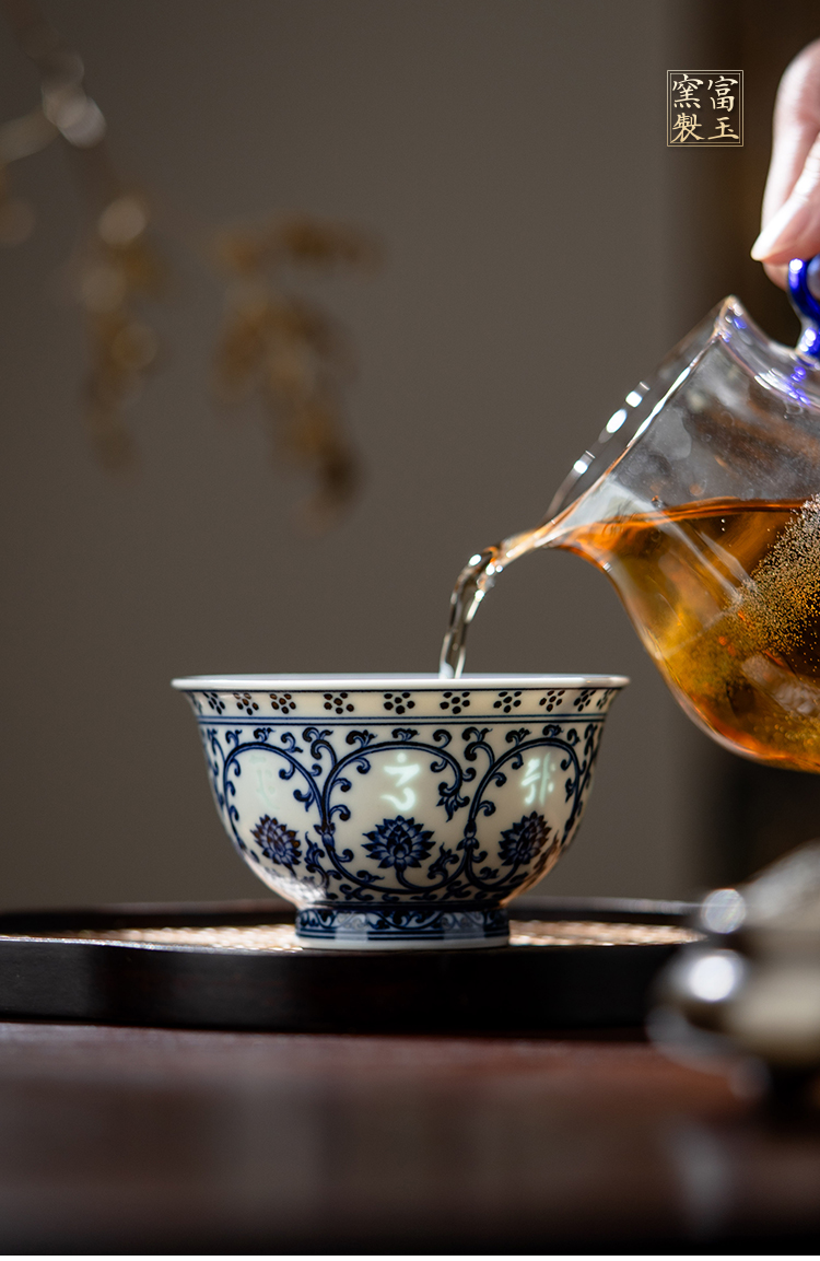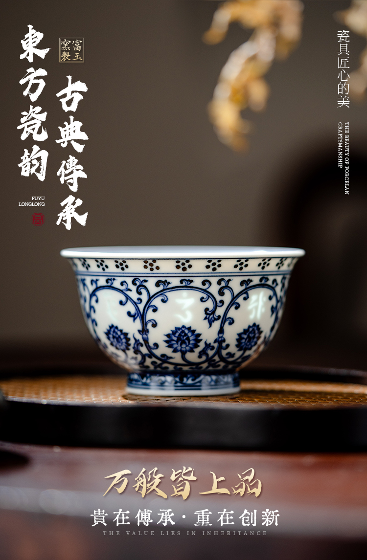 富玉窑【八字真言】景德镇陶瓷主人杯单杯青花玲珑柴窑茶杯压手杯