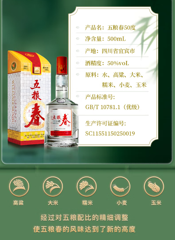 五粮春 浓香型白酒 50度 500ml 单瓶装