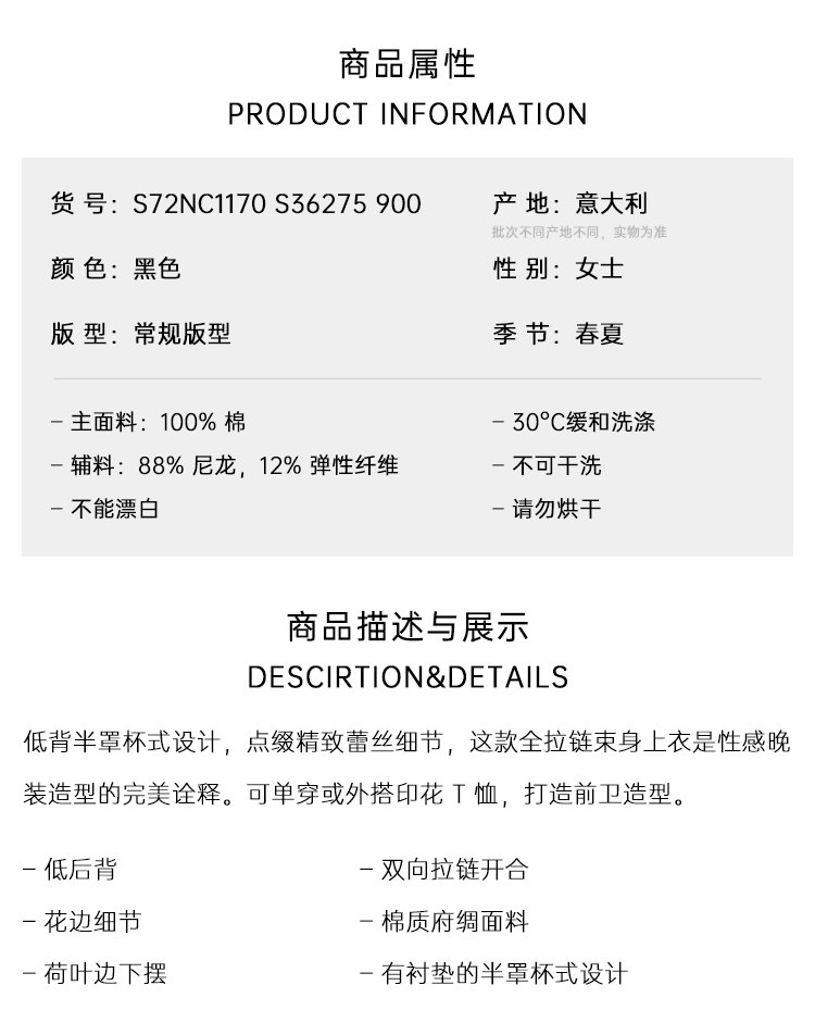 DSQUARED2 女士80年代V型胸衣 黑色 S72NC1170 S36275 900