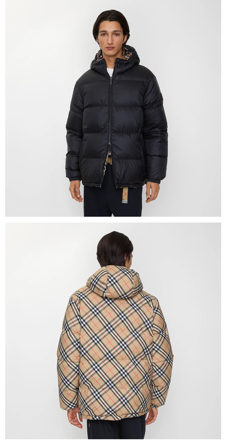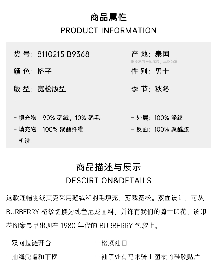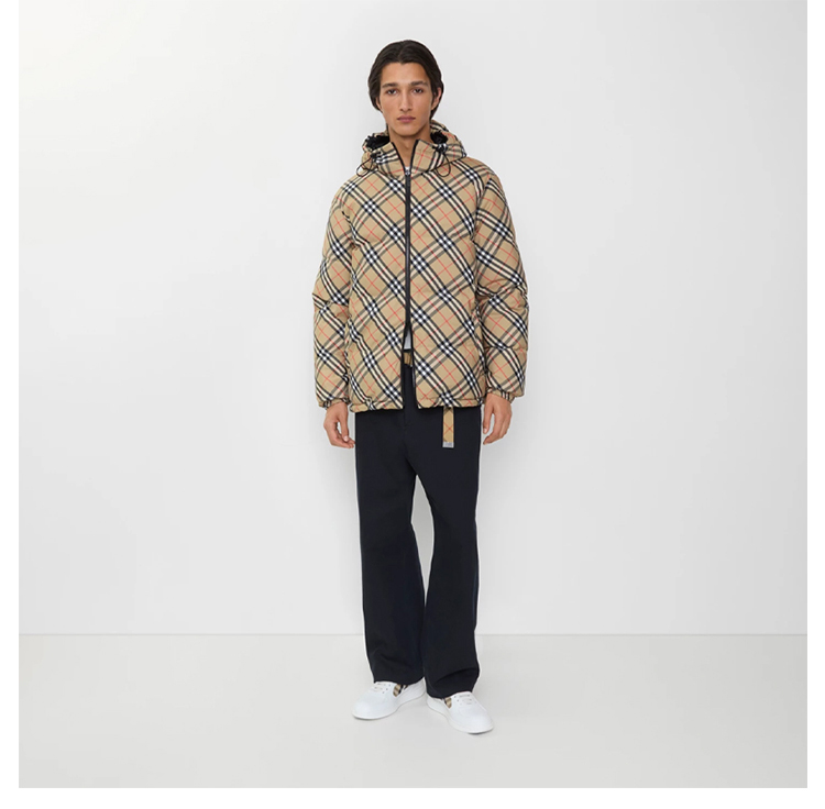 BURBERRY 巴宝莉 男士马术骑士徽标贴片双面格纹连帽羽绒服 格子 8110215 B9368