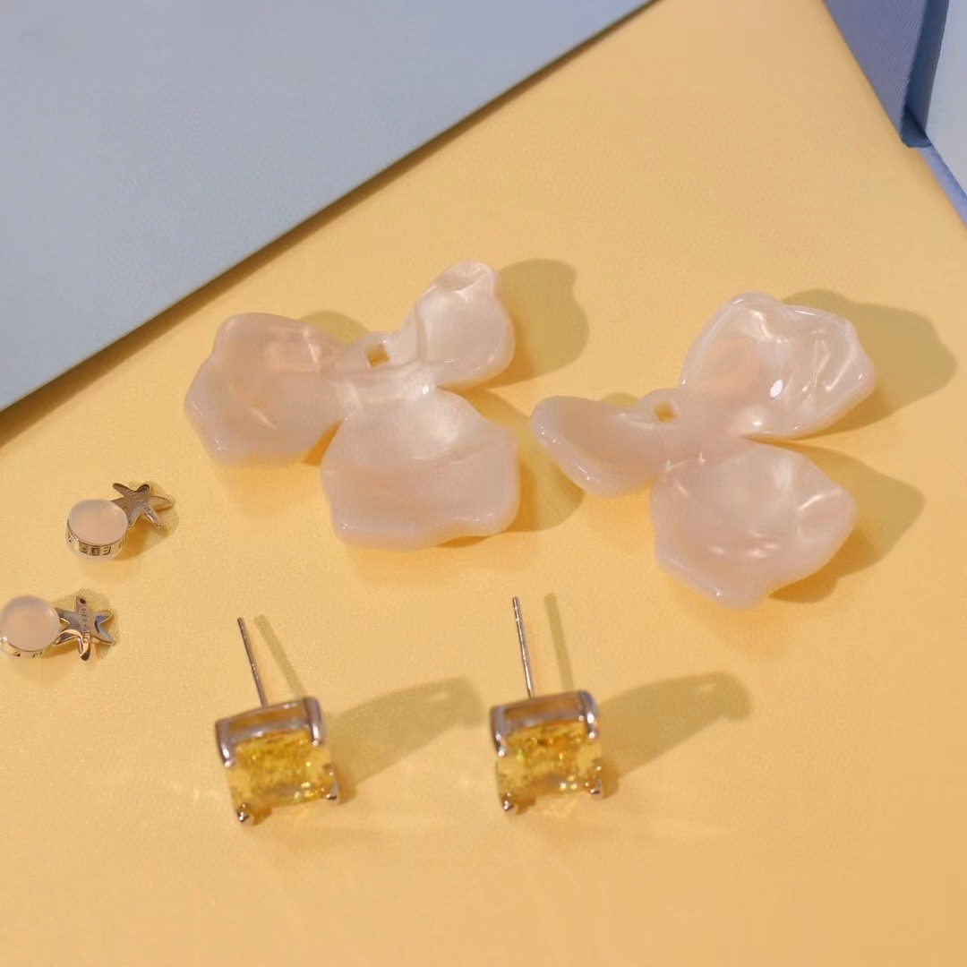 设计师将鸢尾绽放瞬间定格为永恒的浪漫,以珠宝为画笔打造摇曳生姿的白鸢尾方糖耳钉!花瓣采用环保板材制成再经打磨抛光,最终呈现出独一无二的纹理,在阳光下呈现出轻盈通透的肌理感超高级!一颗晶莹剔透的黄色方糖石点缀花蕊处,传递温暖治愈的力量灵动璀璨!重点是黄色方糖石可拆卸,一饰多戴,单独佩戴黄色方糖石耳钉,百搭日常,连同花瓣部分一起佩戴,优雅大方,无论是日常佩戴,还是出游度假搭配都绝美!925银针!