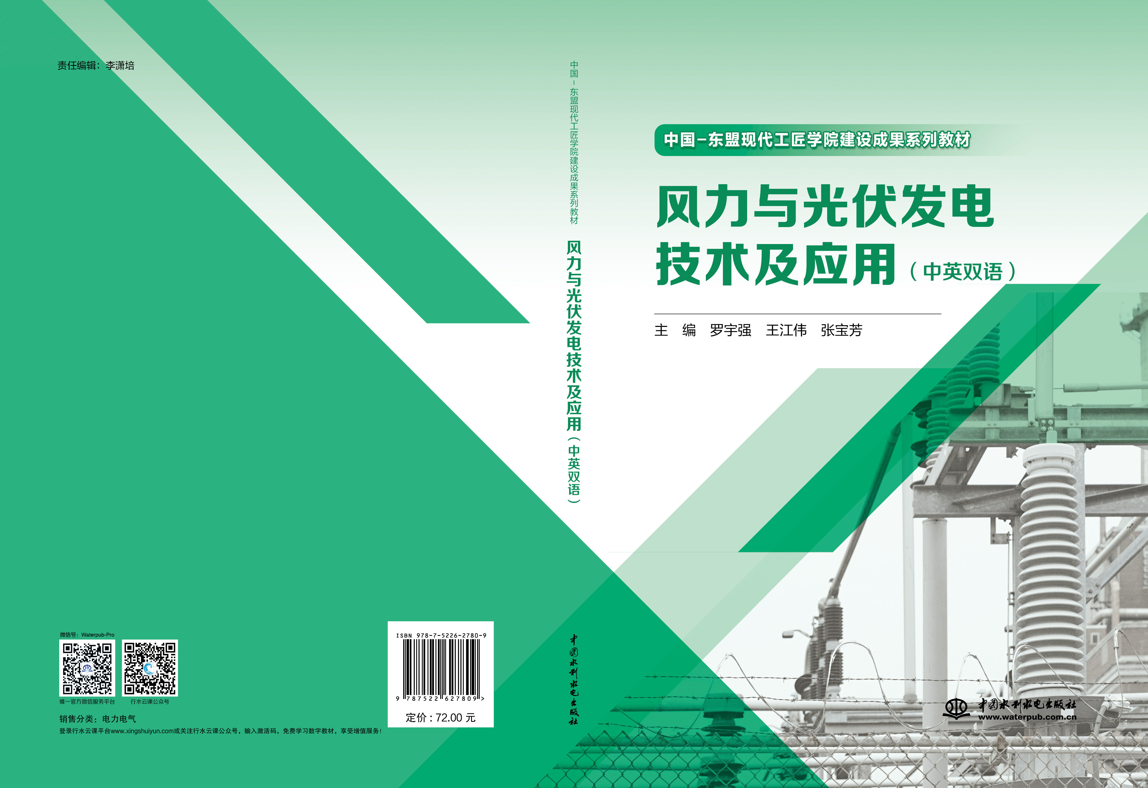 本教材以现行工程实践中涉及的太阳能光伏发电技术和风力发电技术基础理论为主,以典型实践工作任务为载体,按照“任务引领、行动导向”的职业教育教学理念,将太阳能光伏发电系统的构成、安装、运行、调试和维护,以及风力发电技术系统的组成、选型、运行和维护相关知识与技能有机融合,让学习者在完成典型的工作任务过程中,掌据太阳能光伏发电技术和风力发电技术相关知识。全教材涌盖了太阳能光伏发电、风力发电的相关设计、安装、运行和维护方面内容。本教材可供高职高专院校电气类相关专业作为太阳能光伏发电技术及应用、风力发电技术及应用课程使用,也可供工程技术人员参考。