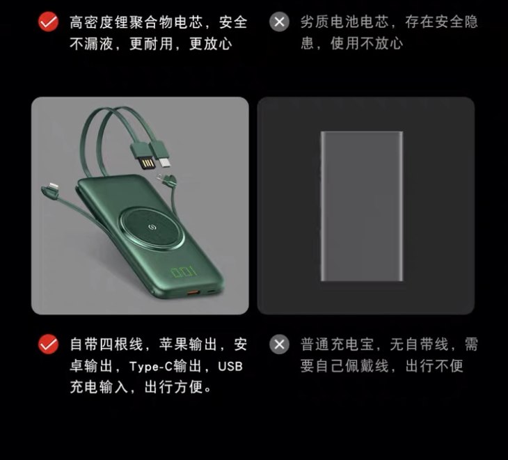️输出自带线:安卓*1 苹果*1 Type-c*1