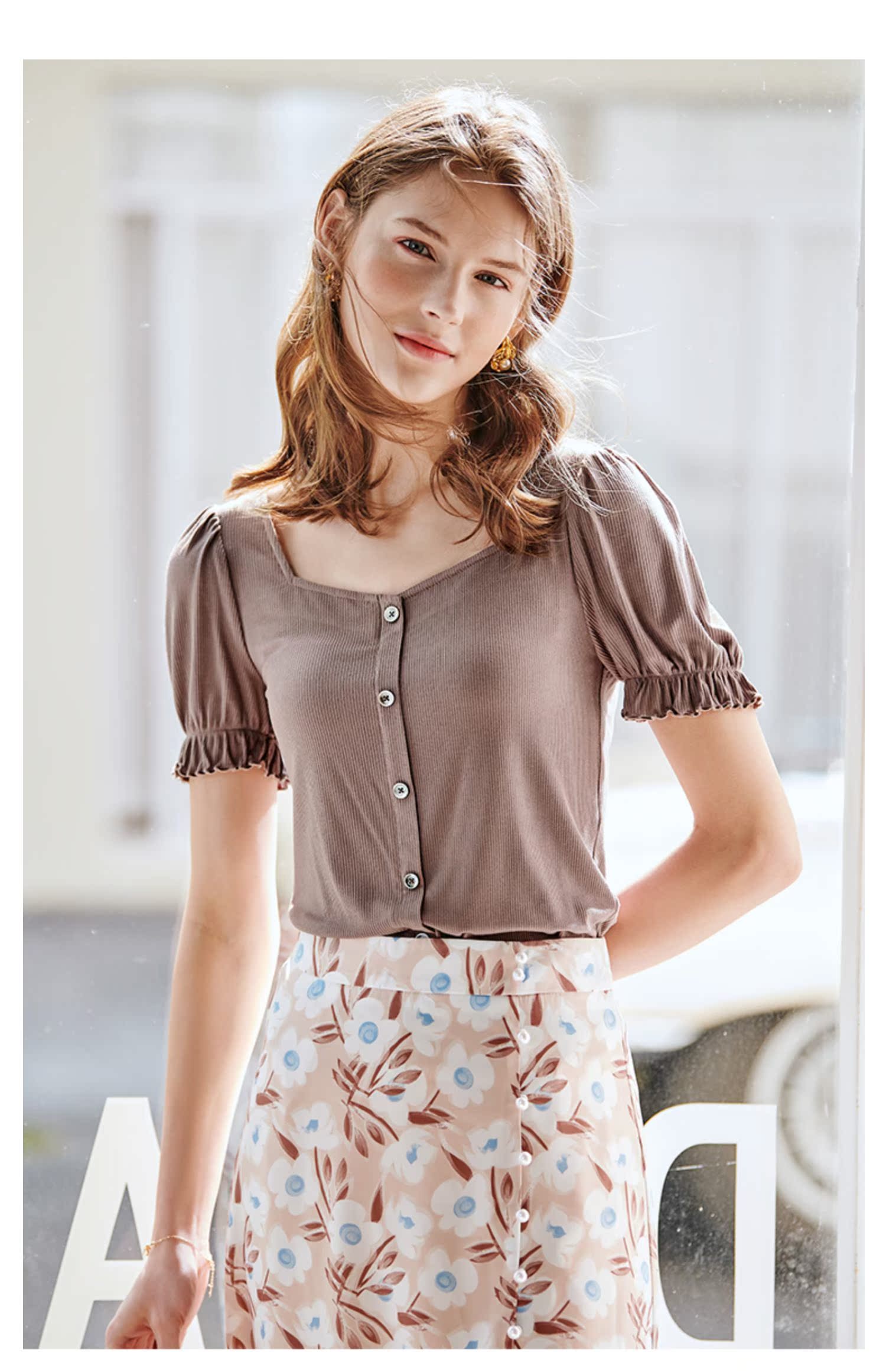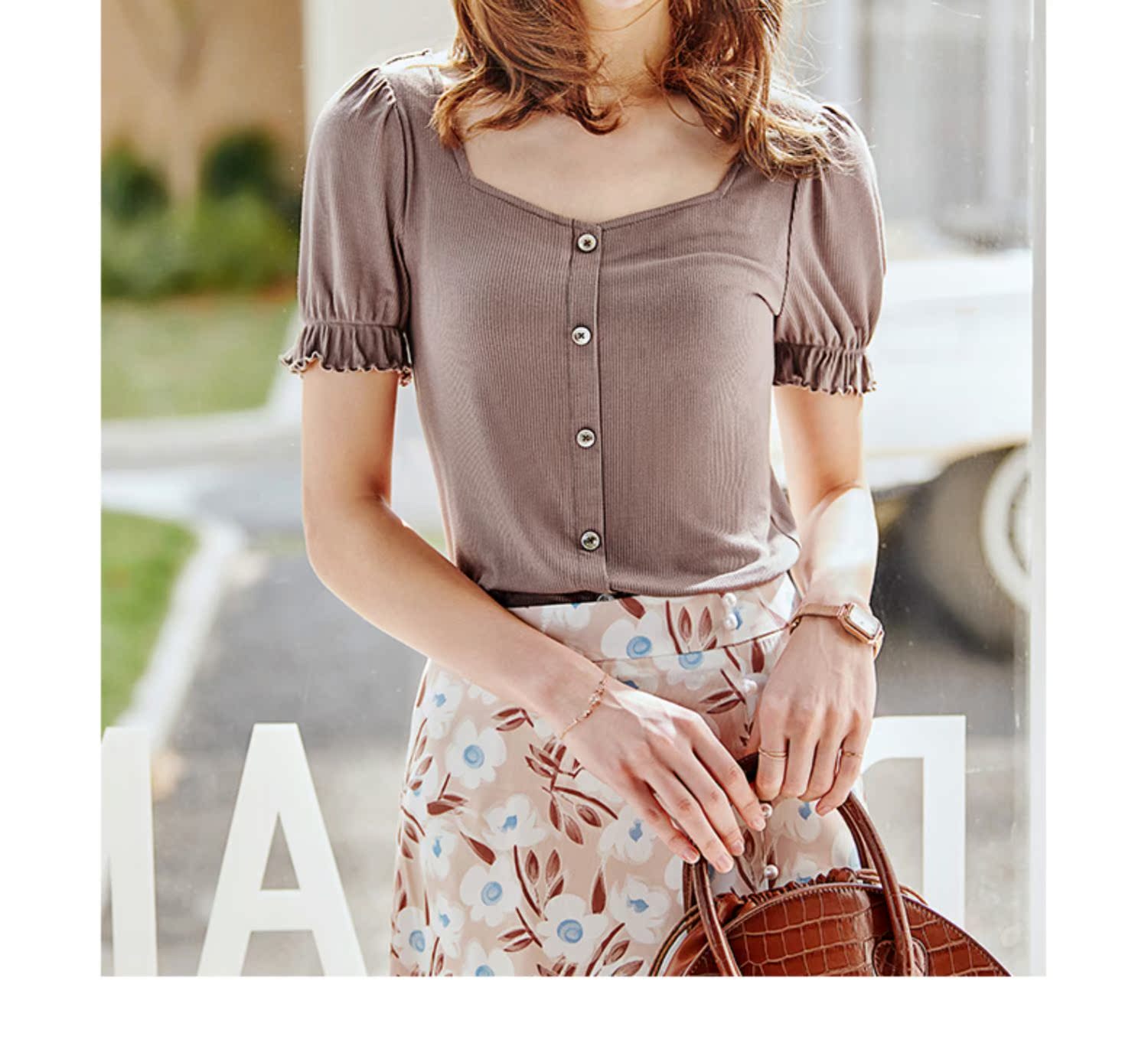 欧芮儿纯色心机短袖T恤女2021年新款夏季网红体恤超火ins针织上衣