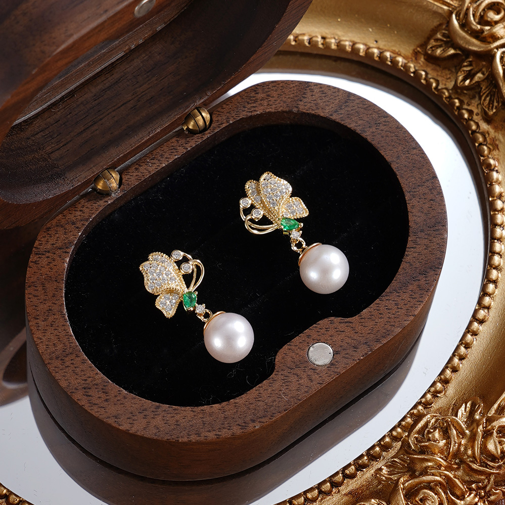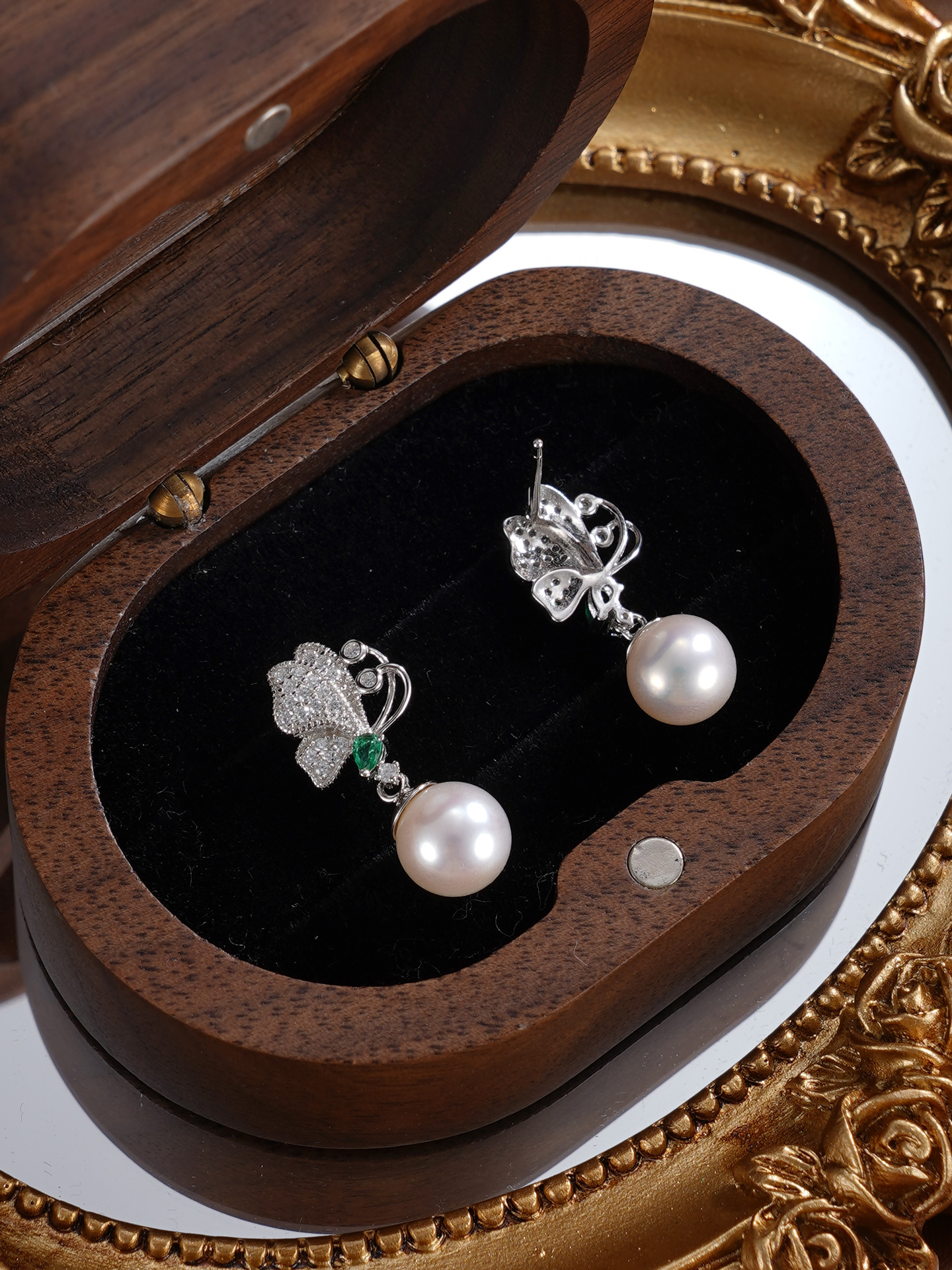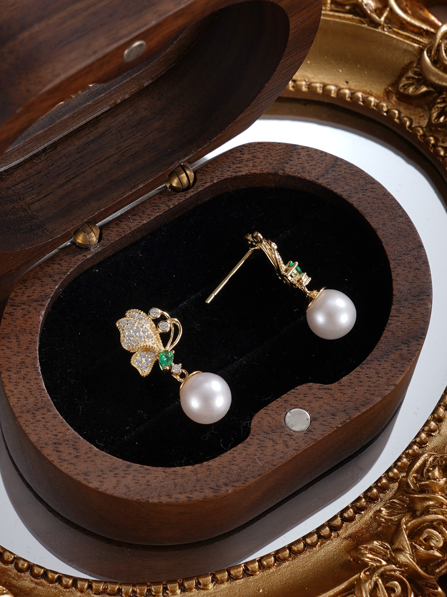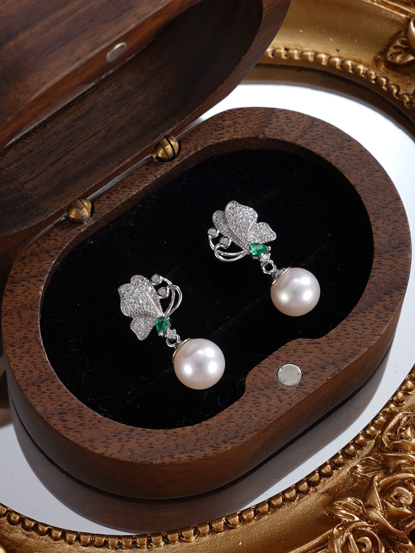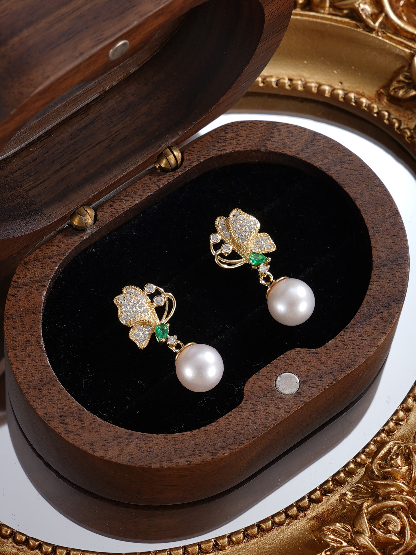 子佩集【蝴蝶诗篇】银S925珍珠惜王妃耳钉【YE0076】7mm珠双色镀金花朵绿玉髓2601
