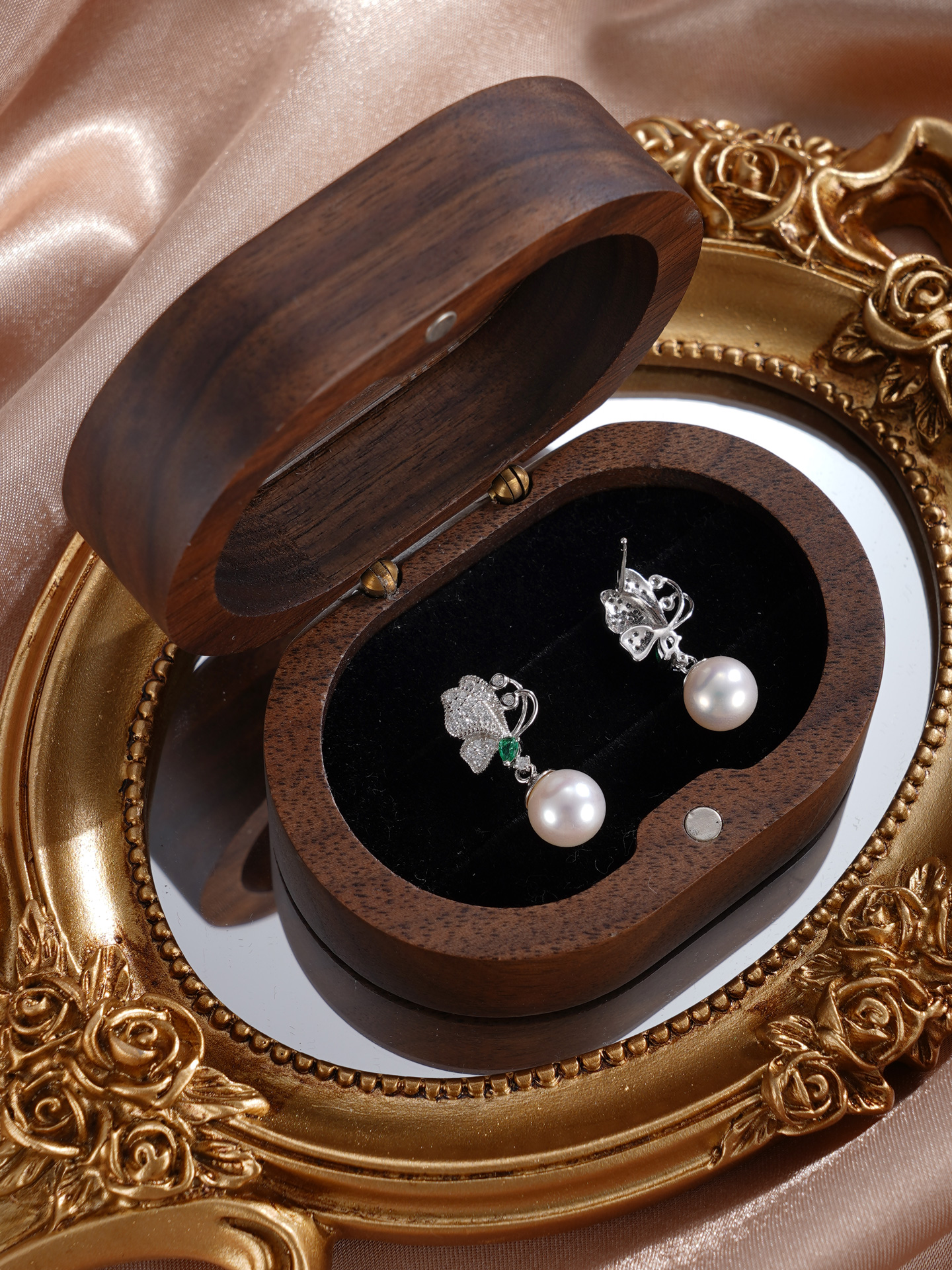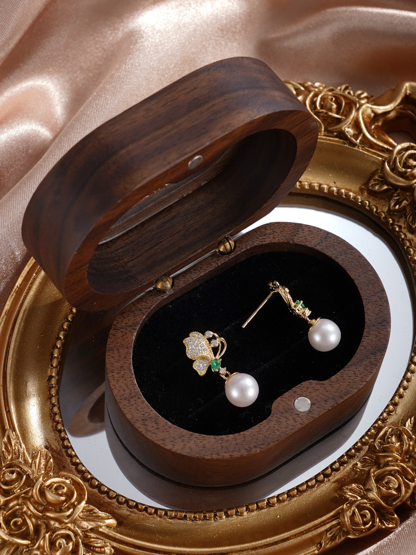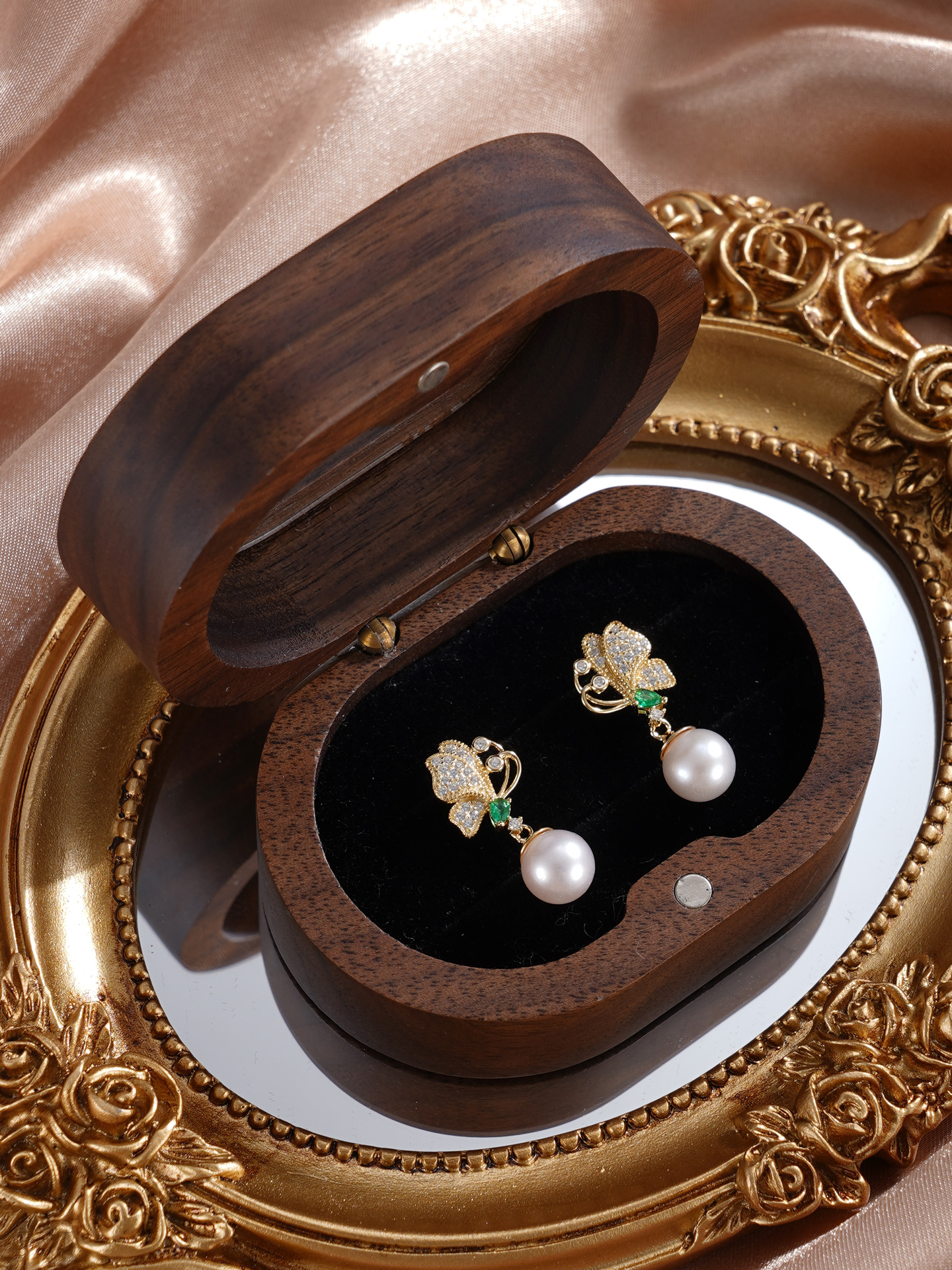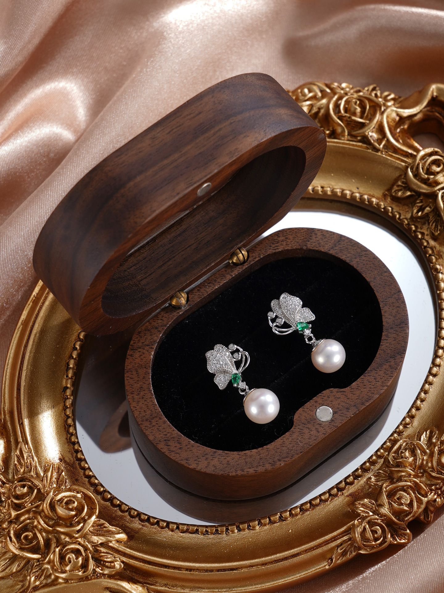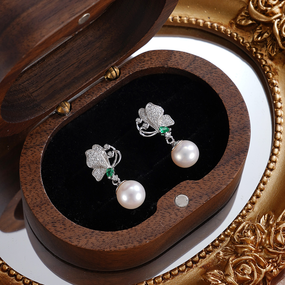 子佩集【蝴蝶诗篇】银S925珍珠惜王妃耳钉【YE0076】7mm珠双色镀金花朵绿玉髓2601