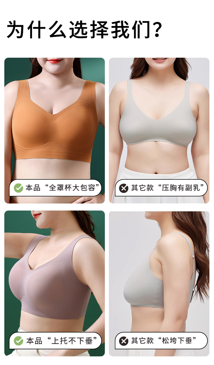 奢姿大码女装2024新款提拉无压背心款时尚打底全罩杯百搭简约内衣92633