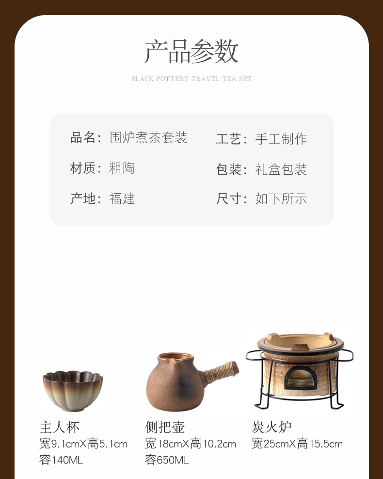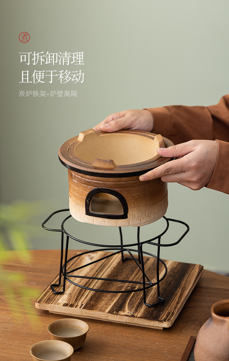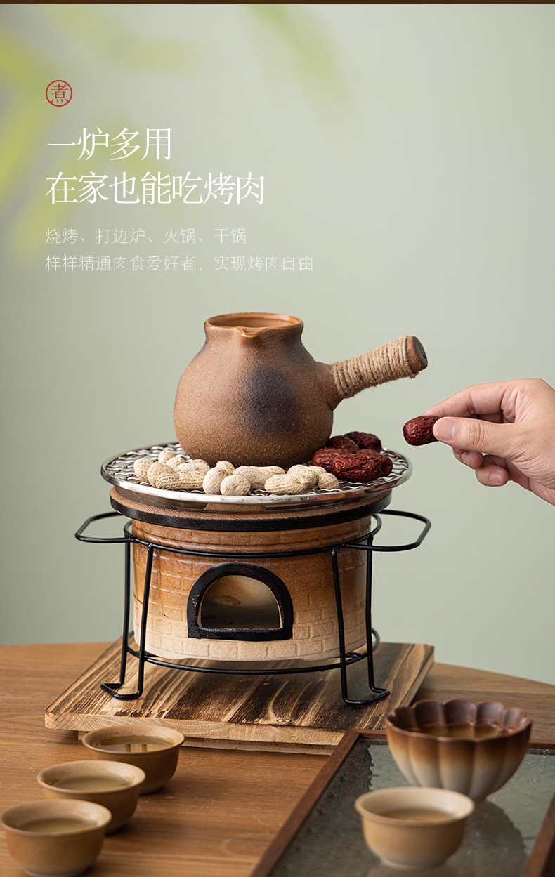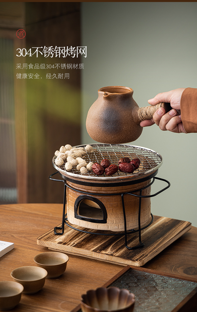 围炉煮茶套装(配置:主人杯、侧把壶、炭火炉、木垫、烤网、品茗杯、果木炭*2包、手提盒)