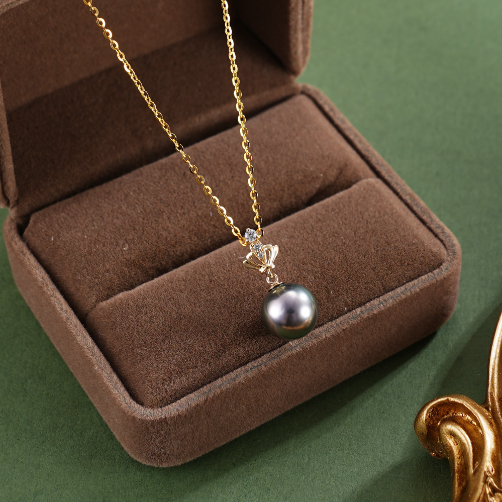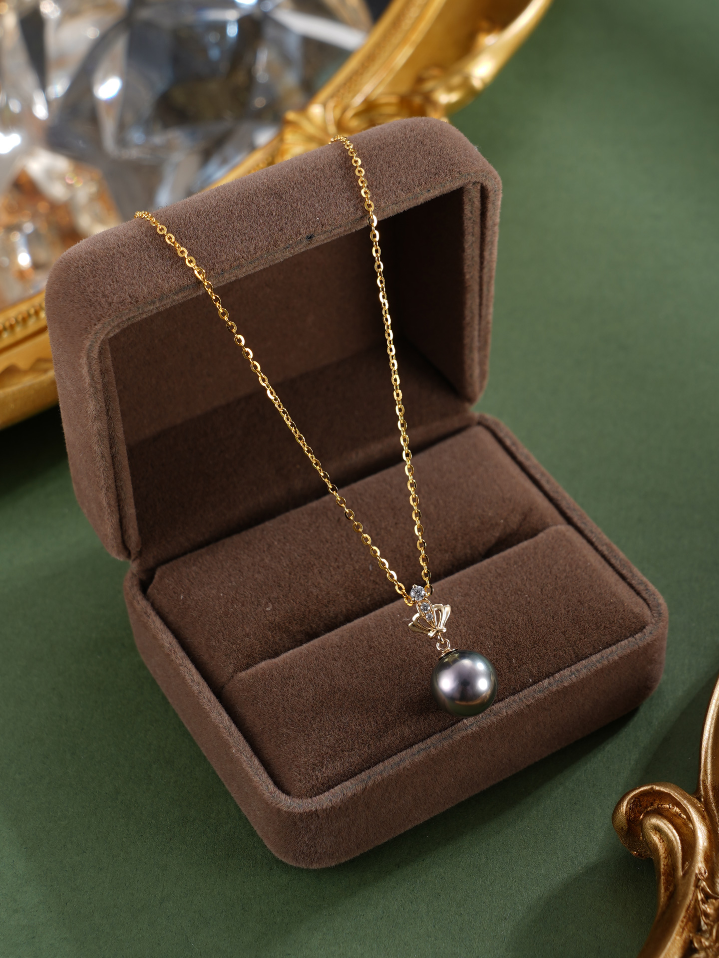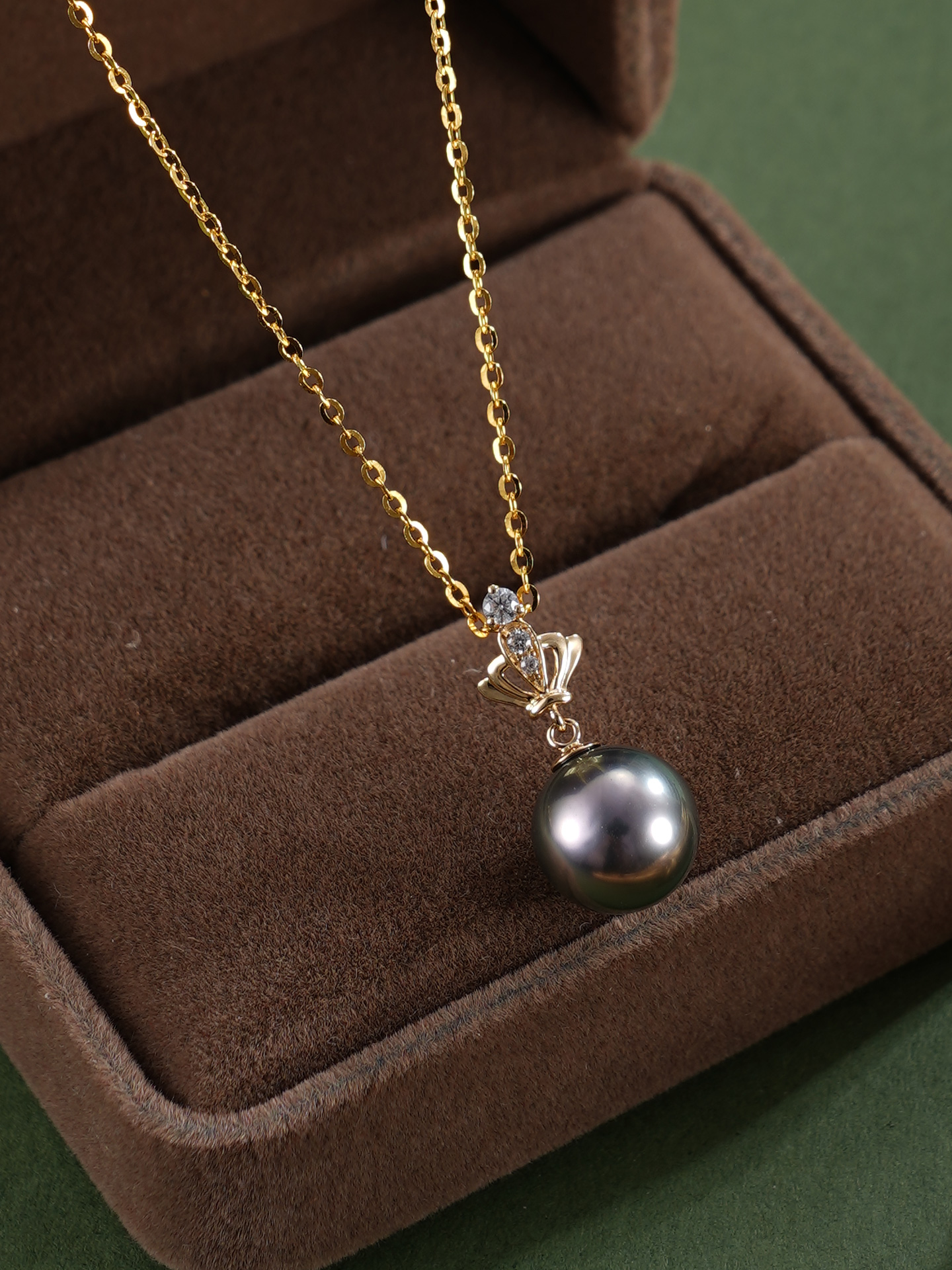 子佩集【暗月女神】G18K珍珠惜王妃吊坠【P210803】9mm珠海水珠黑镀金皇冠(不含链)2601