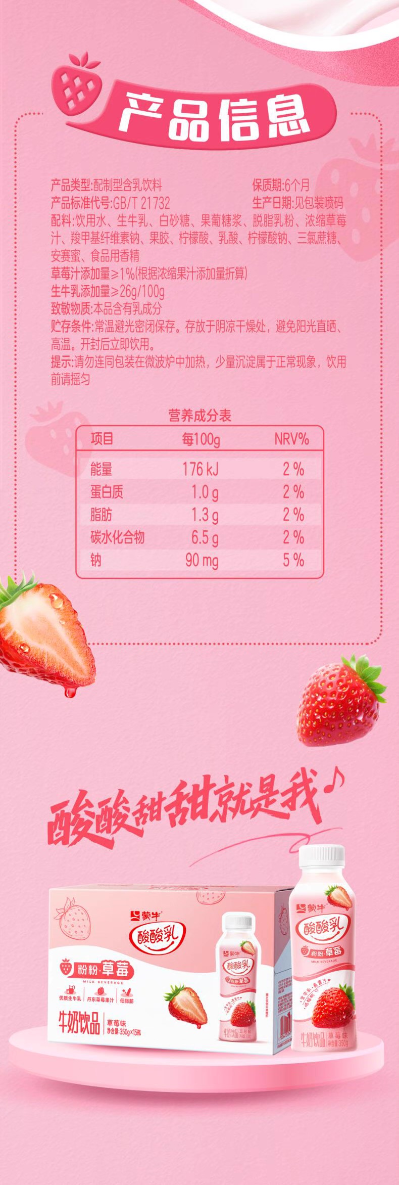 蒙牛酸酸乳 草莓味 牛奶饮品 PET瓶 350g×15瓶 包邮