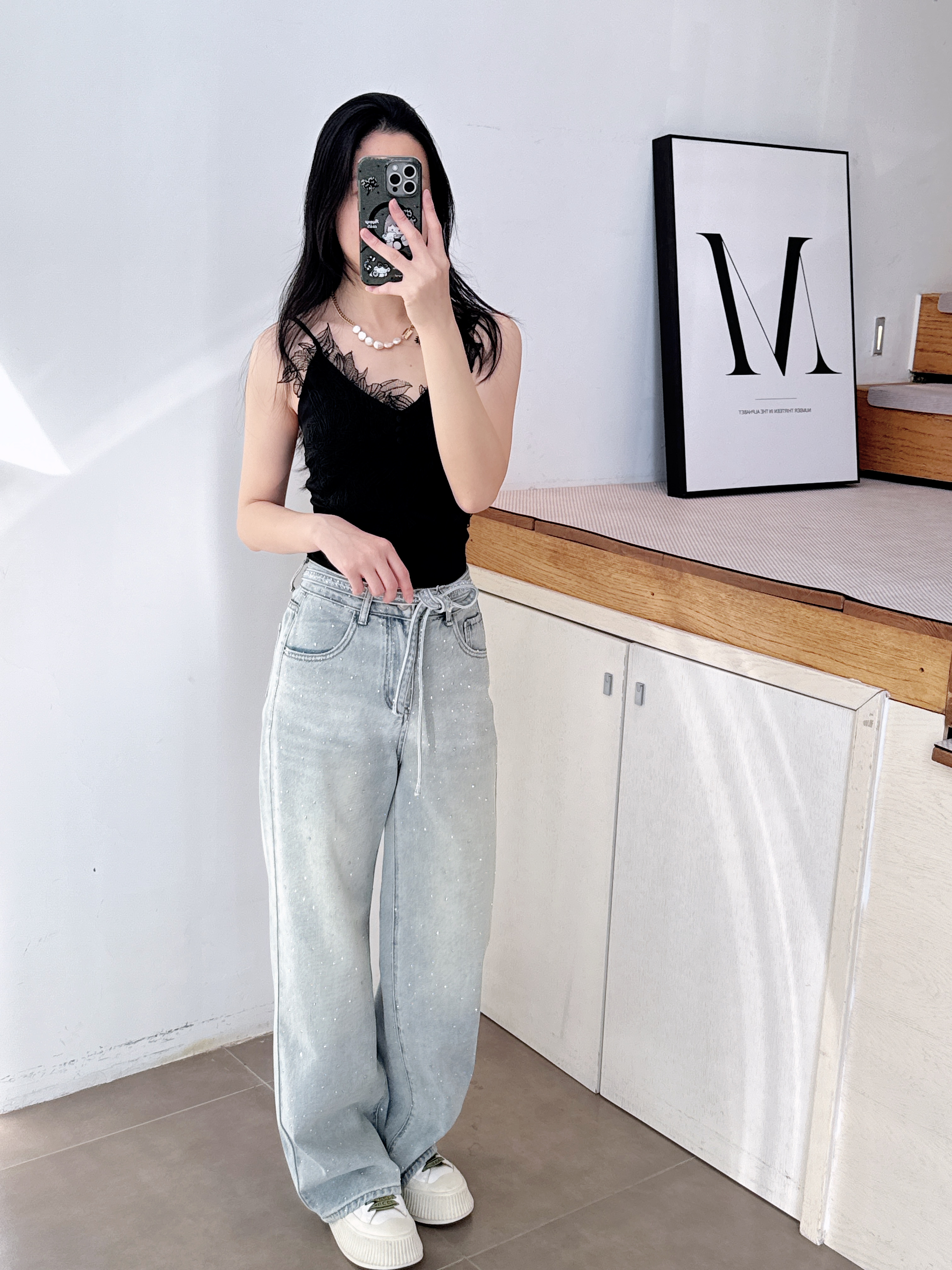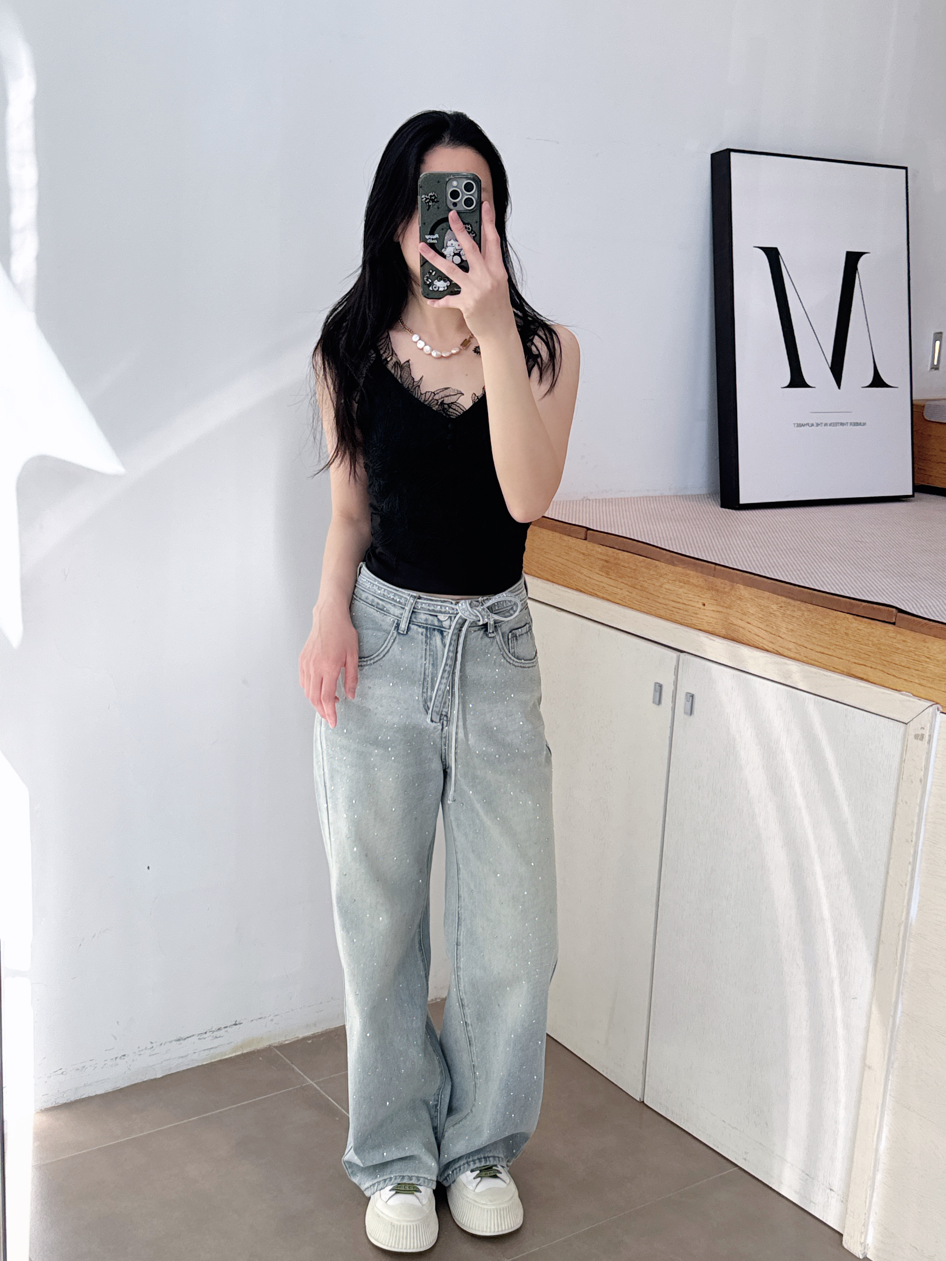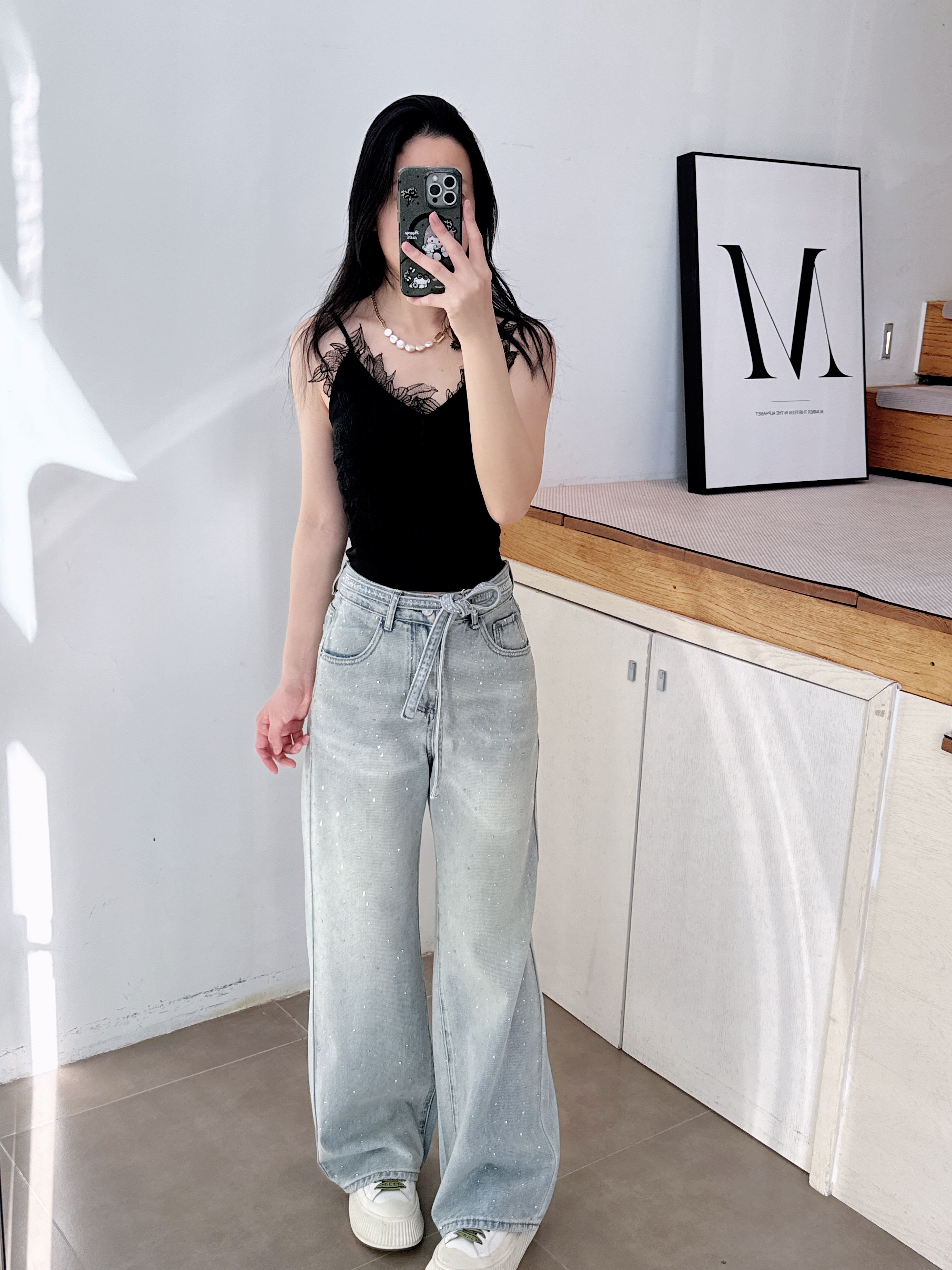 2022年秋季宽松显瘦显长腿垂坠感长裤四面弹高腰阔腿黑色牛仔裤女