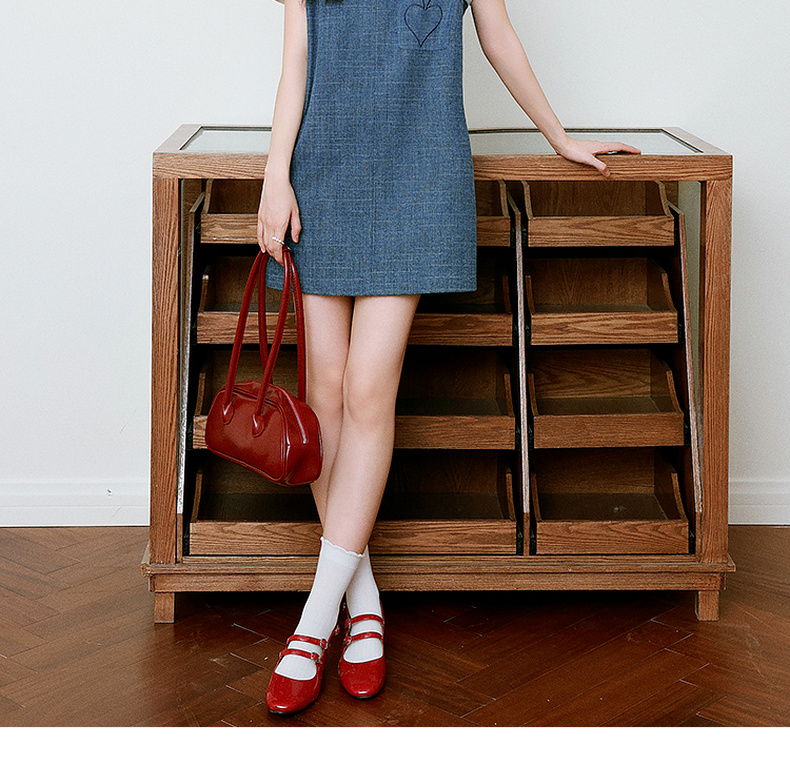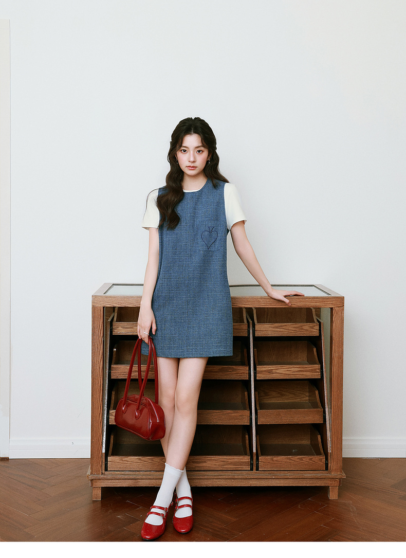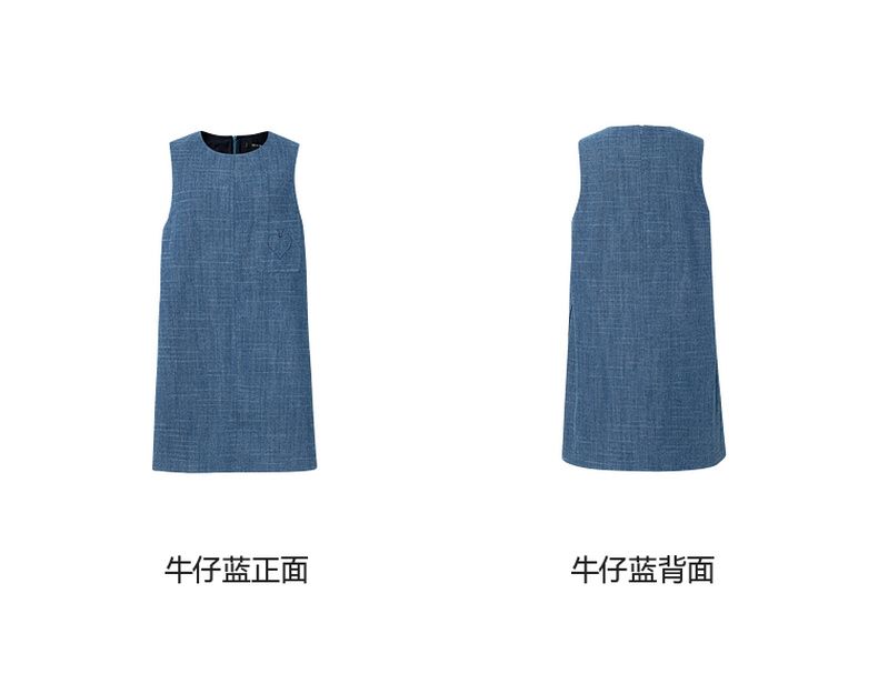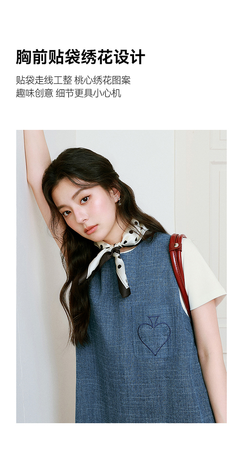 【严选】诗凡黎直筒背心裙2025春新款刺绣牛仔色学院风休闲连衣裙7G3190351