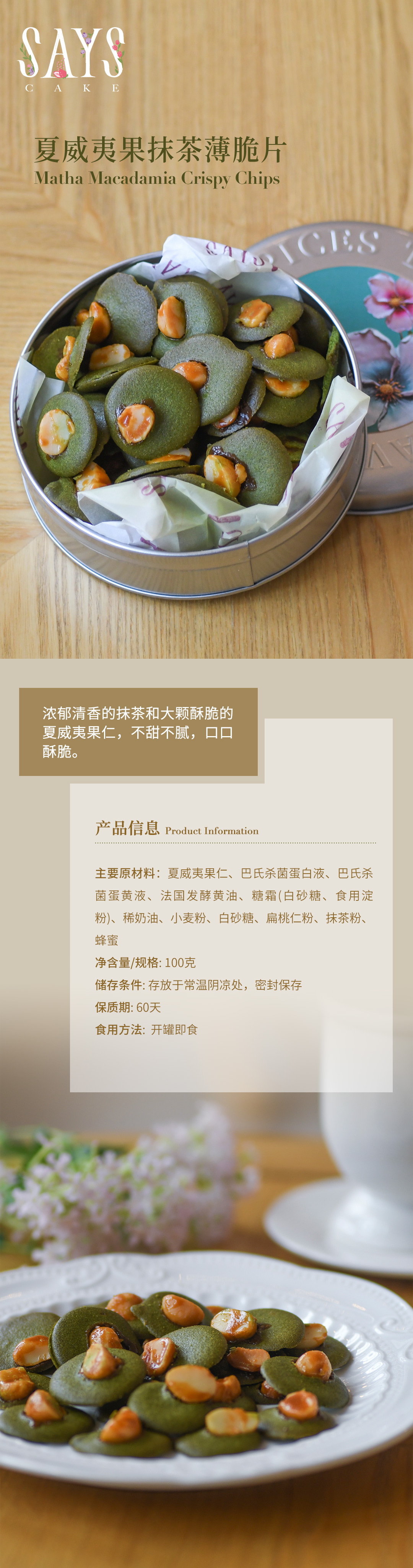 夏威夷果抹茶薄脆片