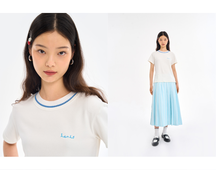 heris/H23116B/H23116R/纯棉圆领刺绣正肩T恤短袖