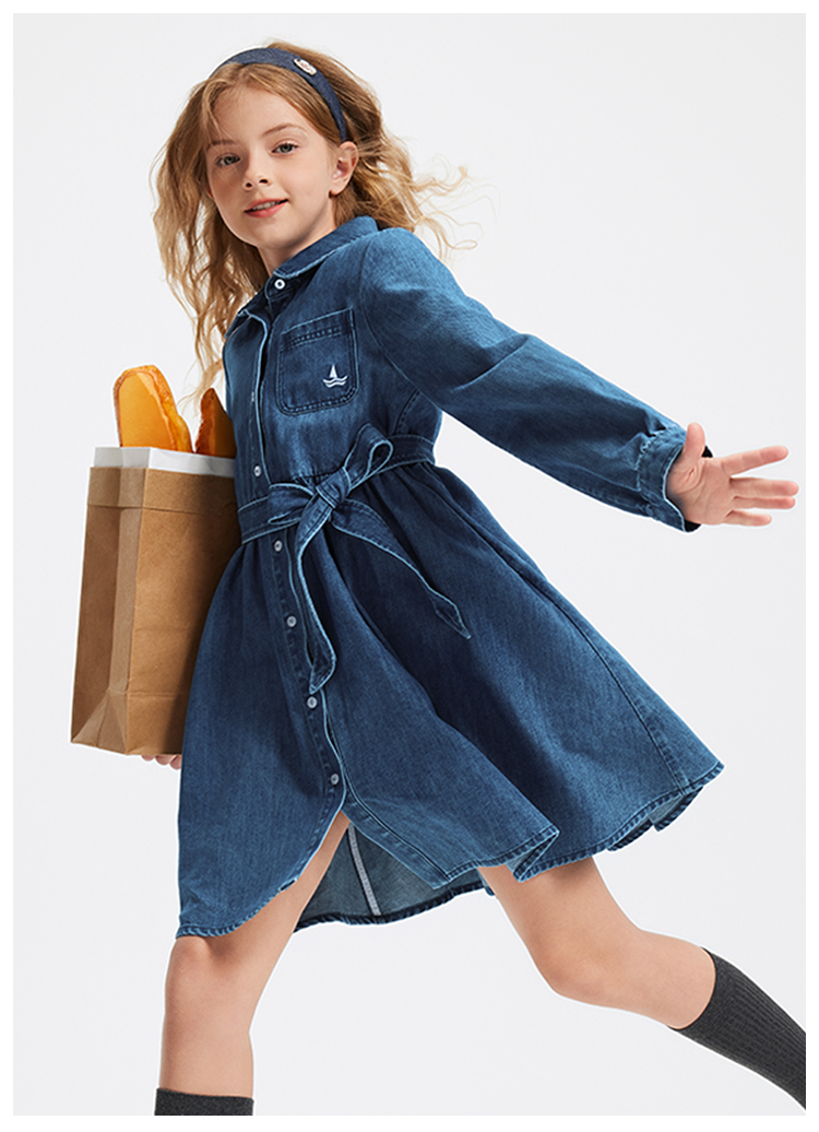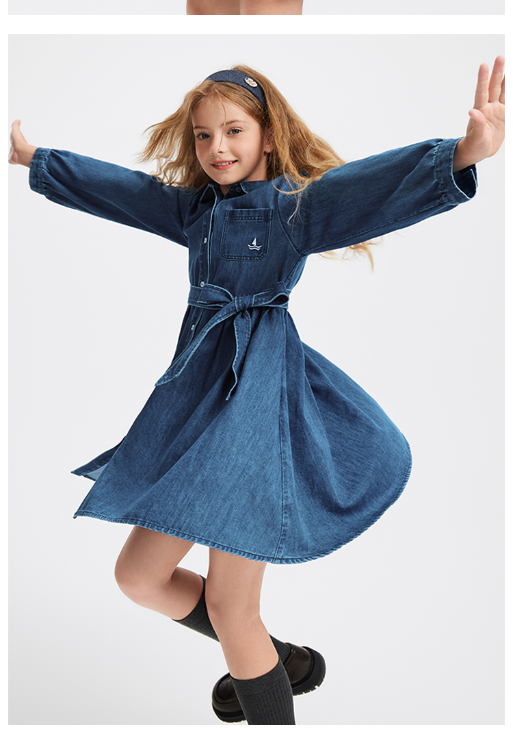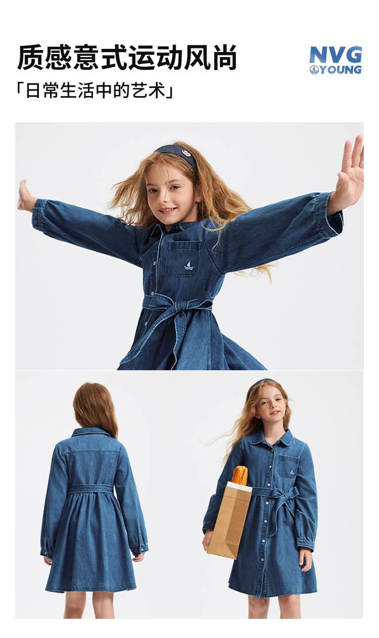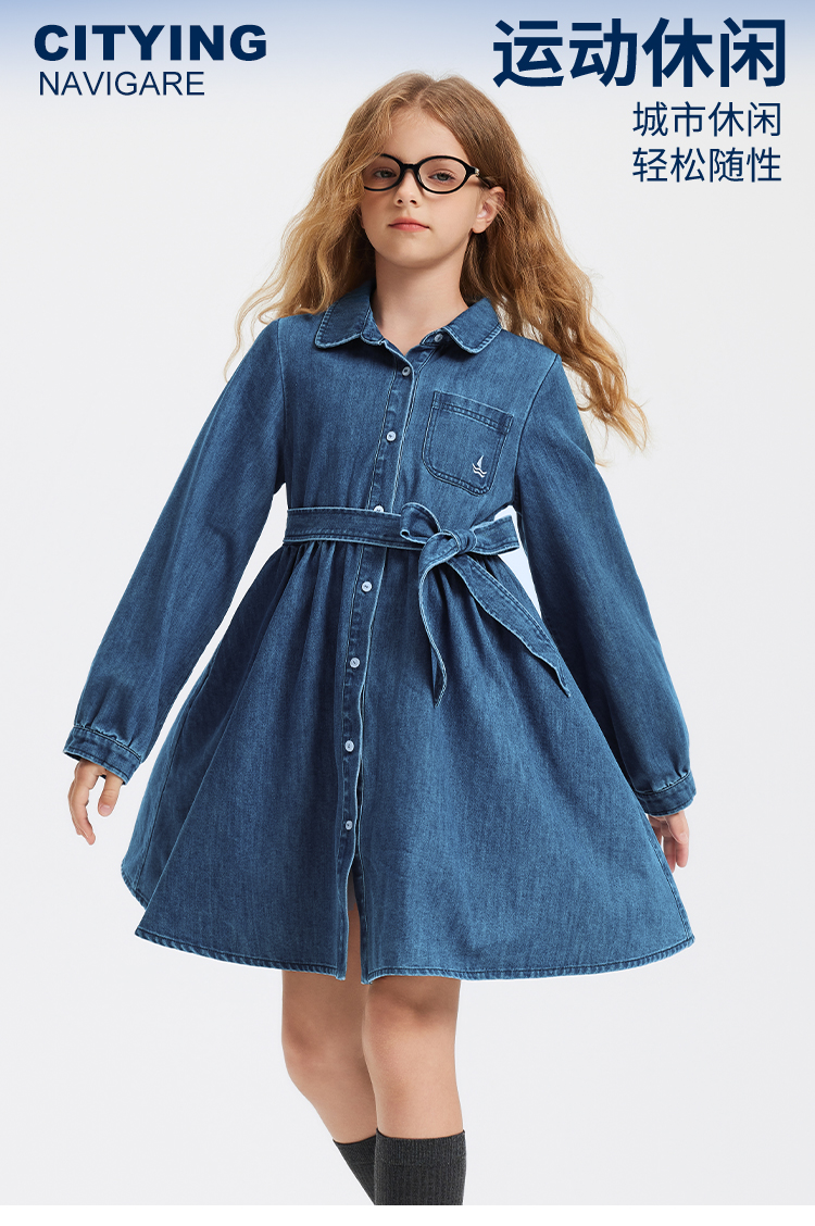 【 纳维凯尔】【120-165】意大利小帆船女童牛仔连衣裙