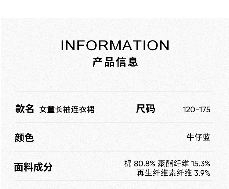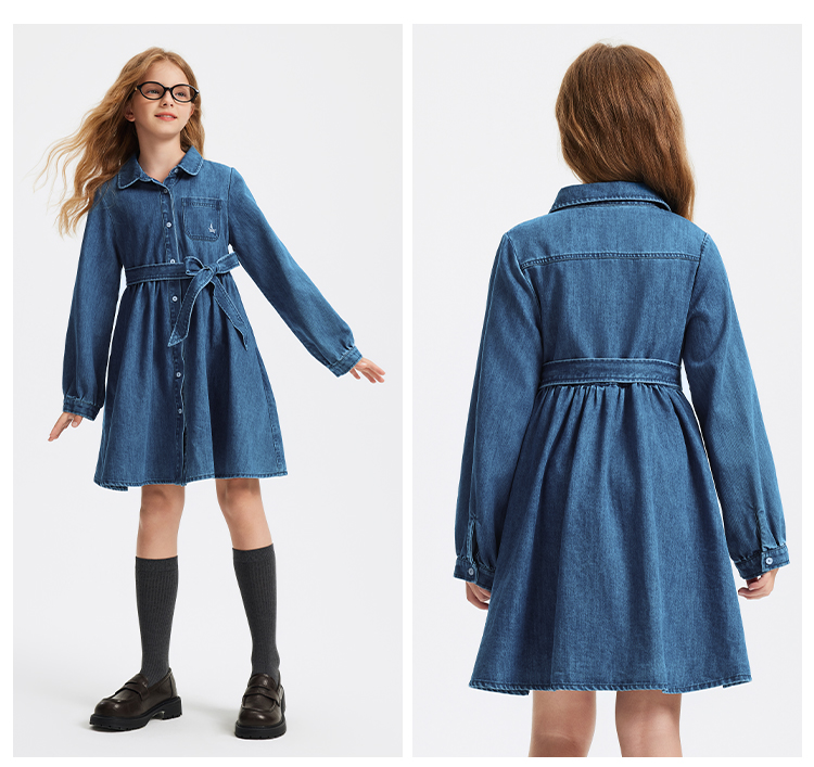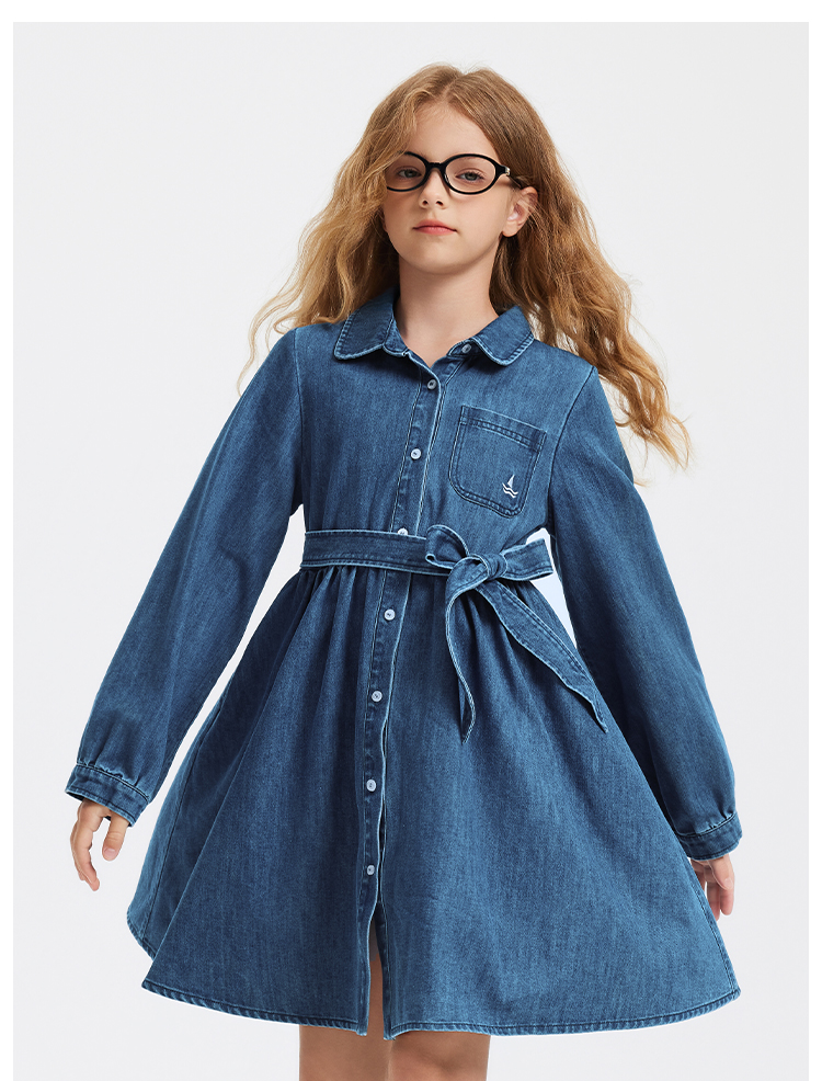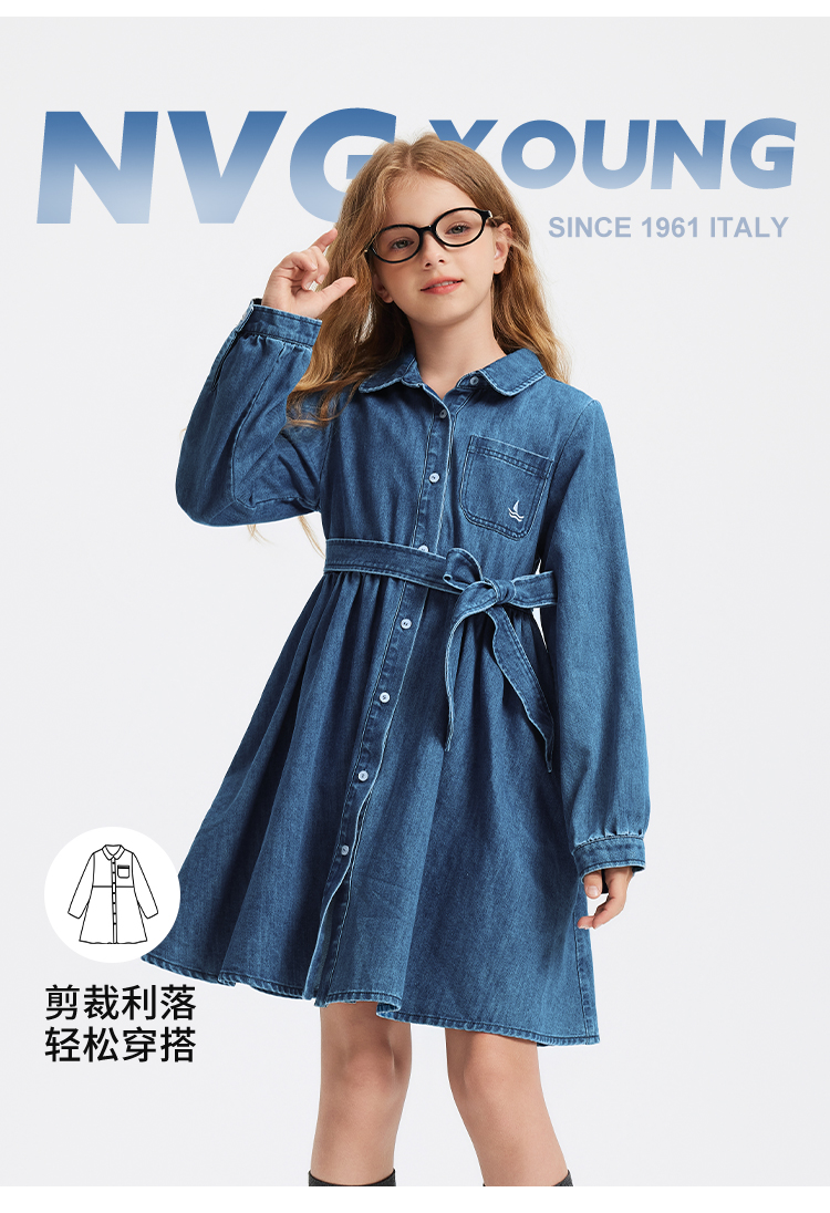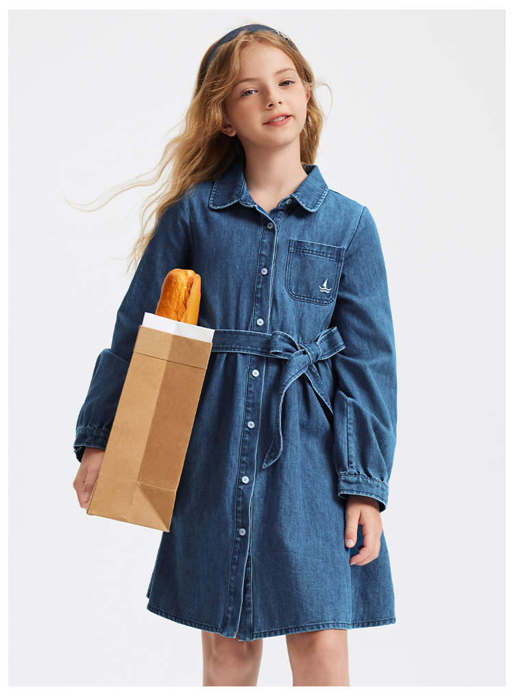 【 纳维凯尔】【120-165】意大利小帆船女童牛仔连衣裙