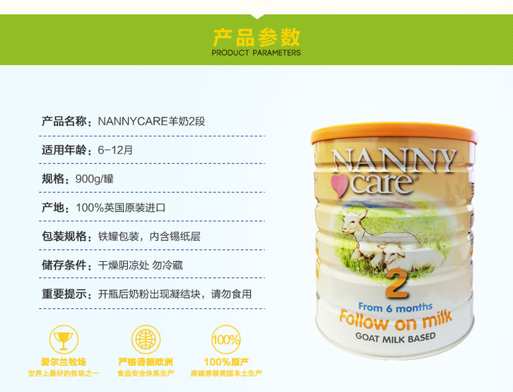 〖英国直邮〗英国纳尼凯尔Nannycare羊奶粉2段900g