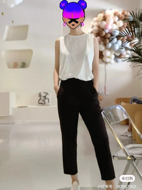 然后 两侧是双裤线的那种感觉 大家都能理解吧 视觉上能显腿细 哈~