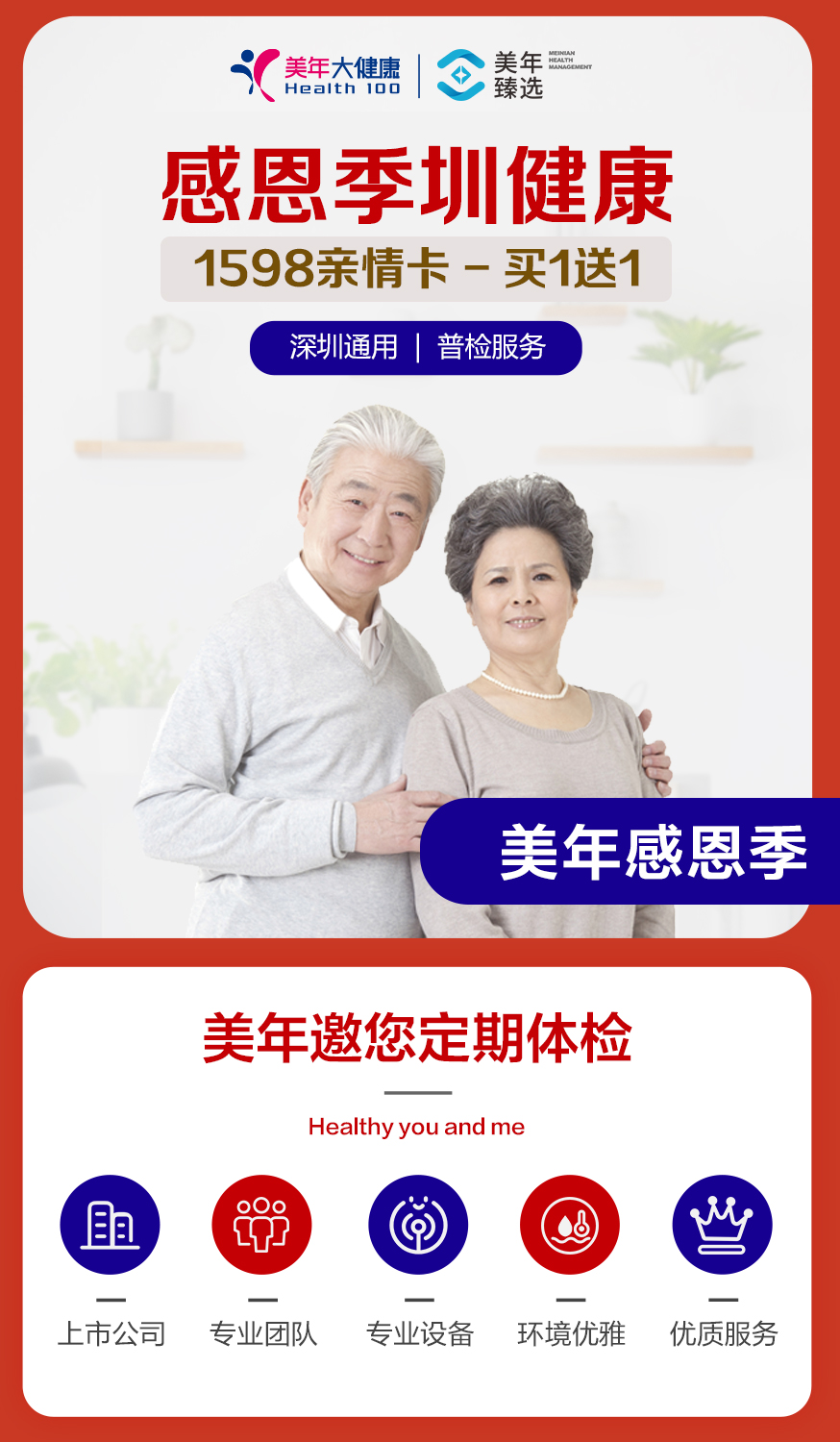 【美年大健康】感恩季 圳健康 1598亲情卡,买一送一(下单后找客服预约)
