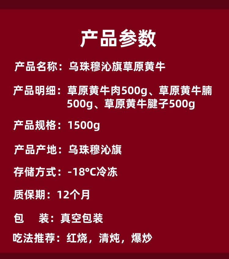 【发出后不支持拦截退货】牧森甄 乌珠穆沁旗草原黄牛单品组合A 1500g