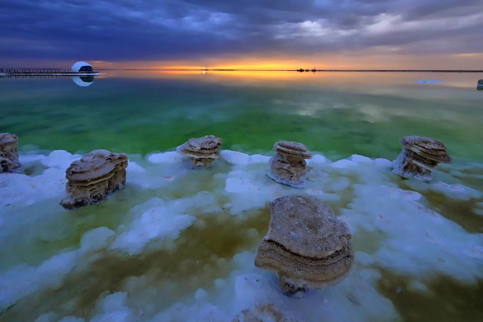 早餐后前往拍摄网红波浪公路,东台号称"中国马尔代夫"盐湖,水上雅丹日落。