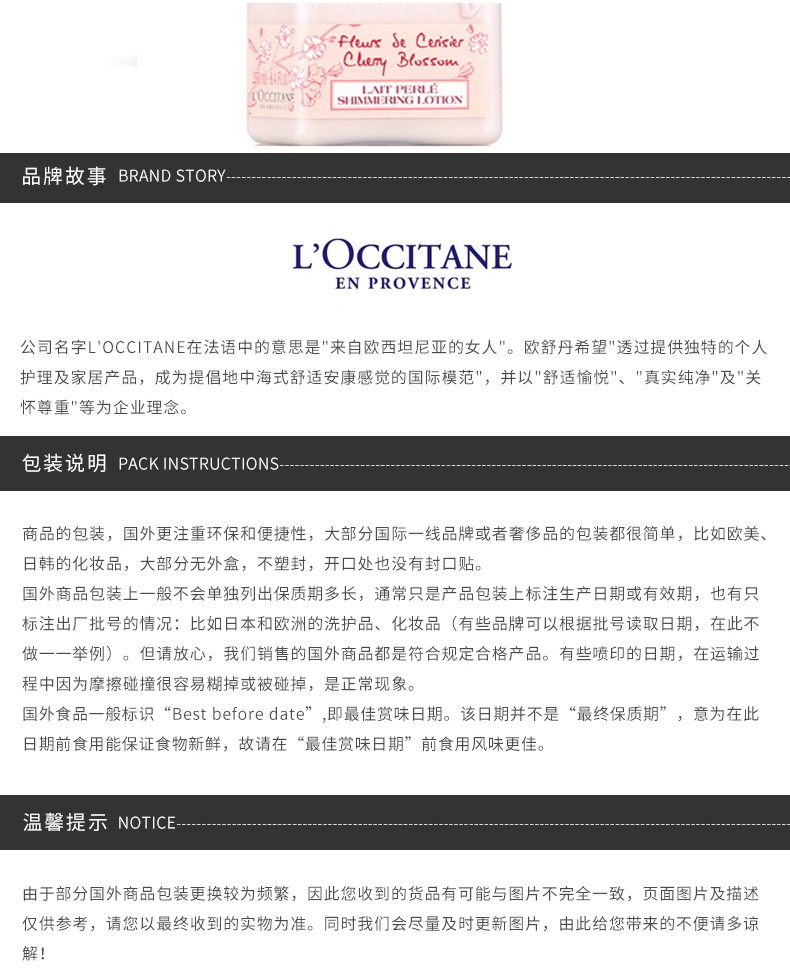 【鹿晗同款】L'OCCITANE/欧舒丹 樱花滋润保湿身体乳 250ML