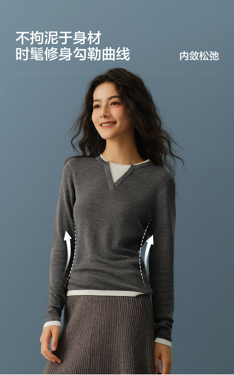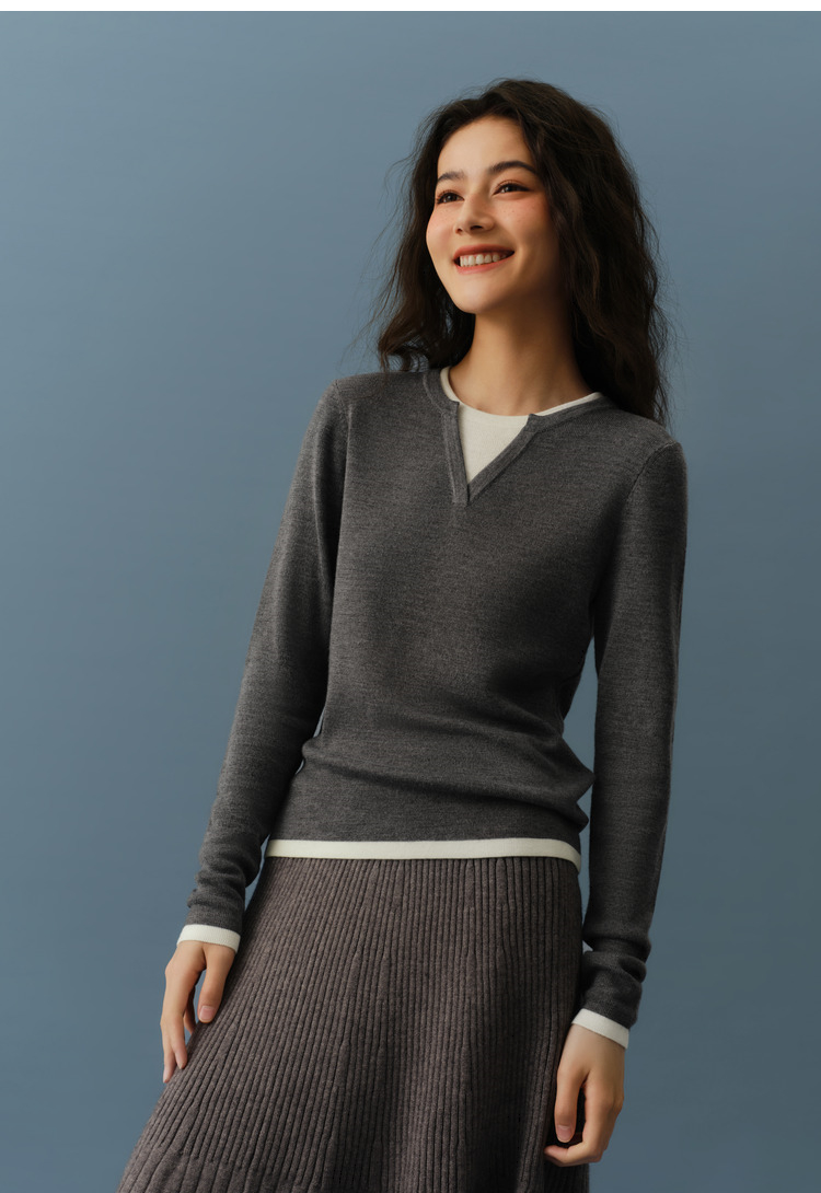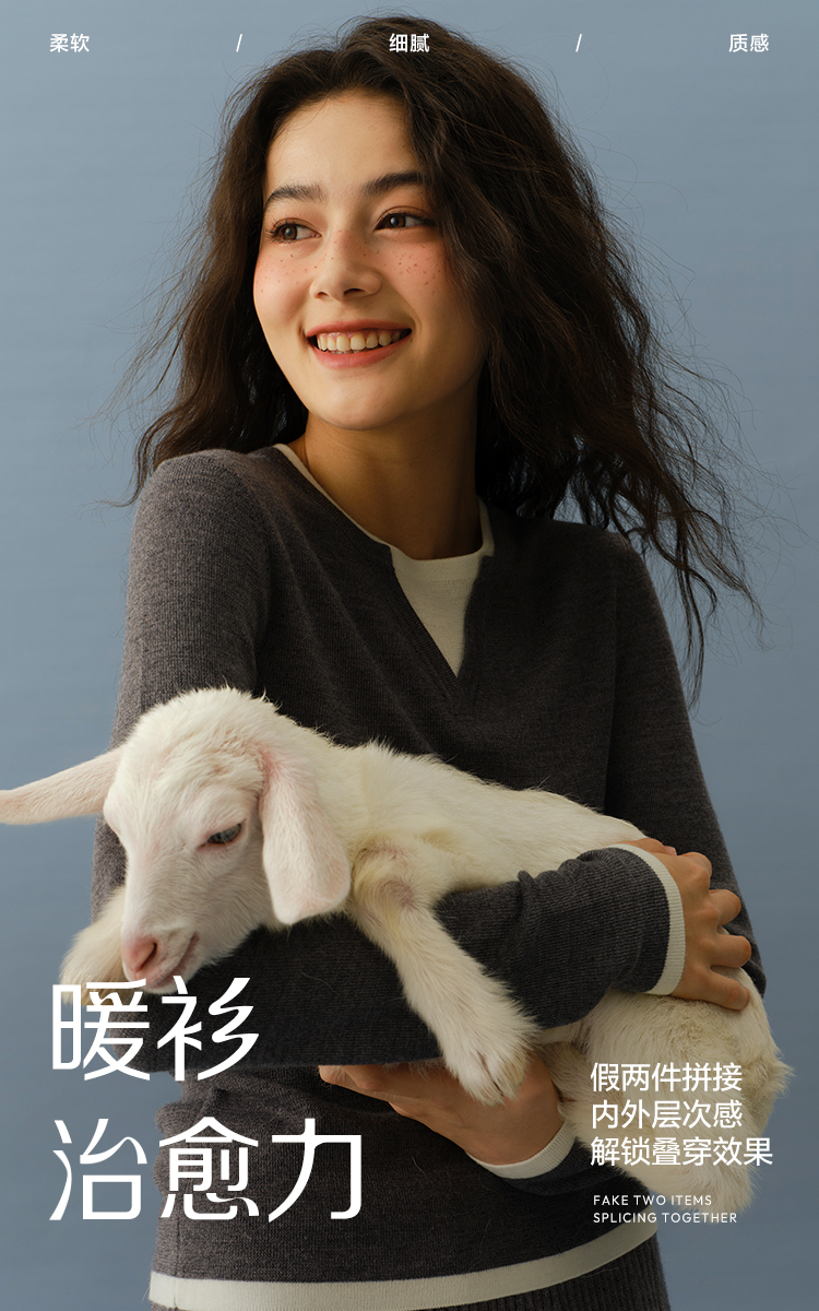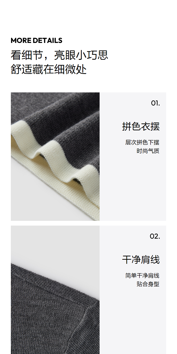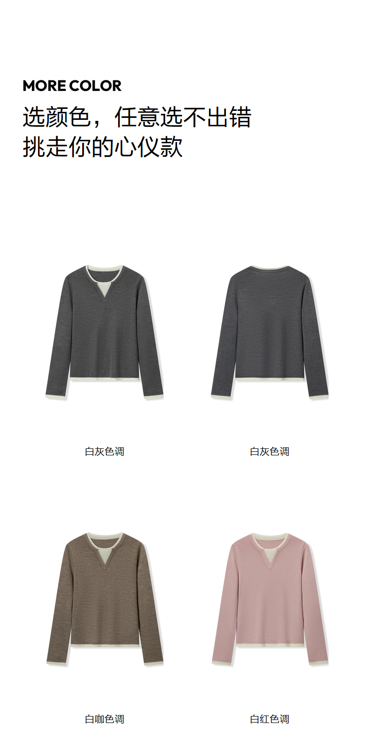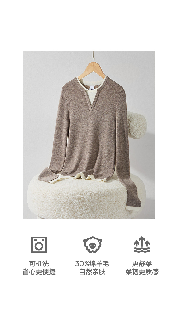 森马针织衫女含羊毛圆领修身气质冬季新款假两件拼色毛衫时尚