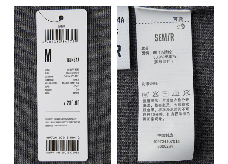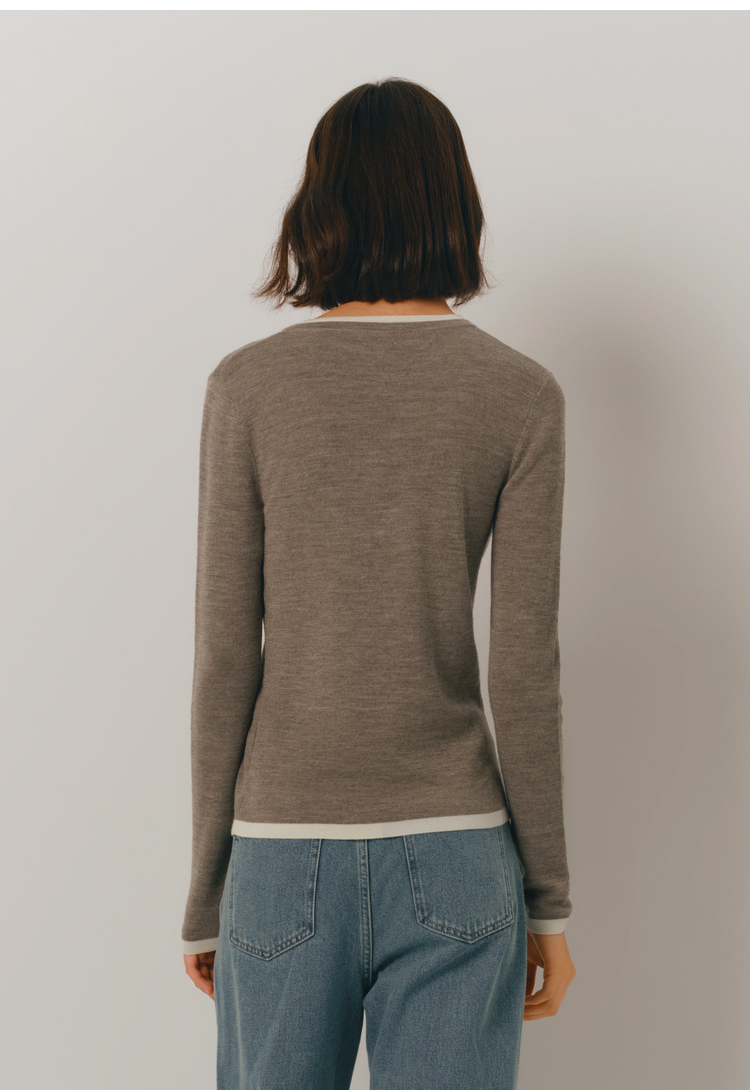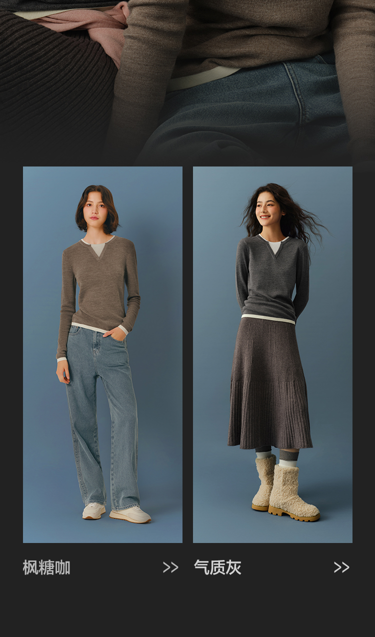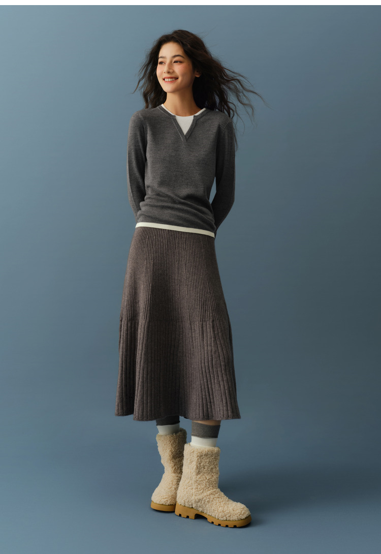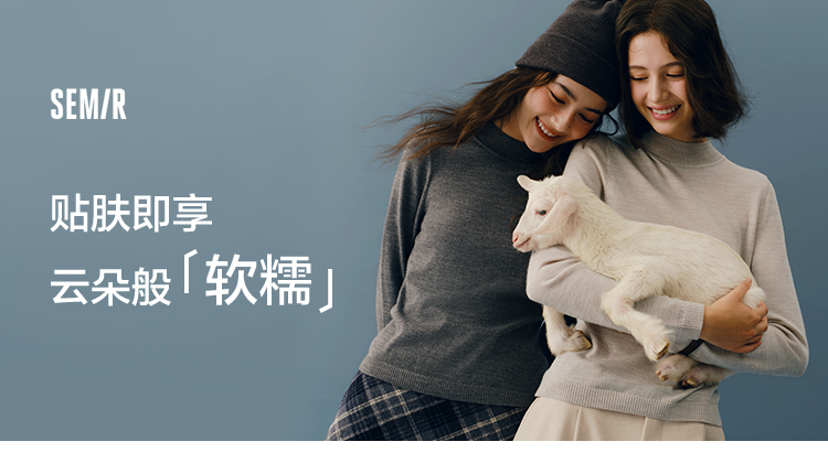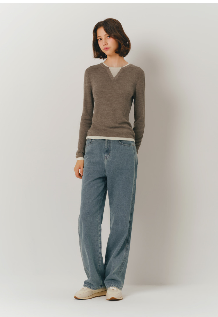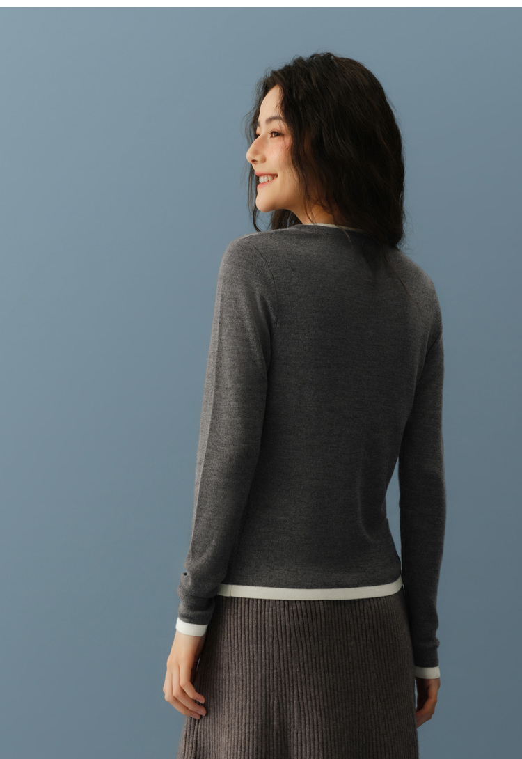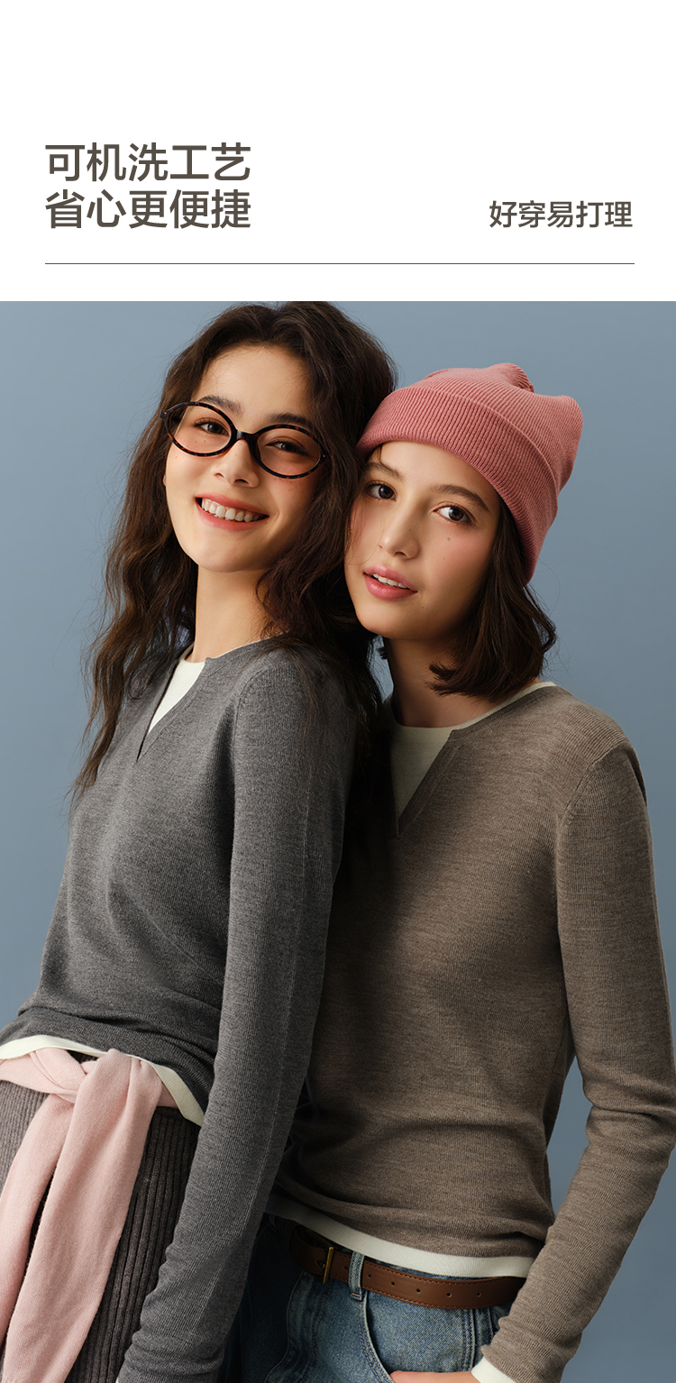 森马针织衫女含羊毛圆领修身气质冬季新款假两件拼色毛衫时尚
