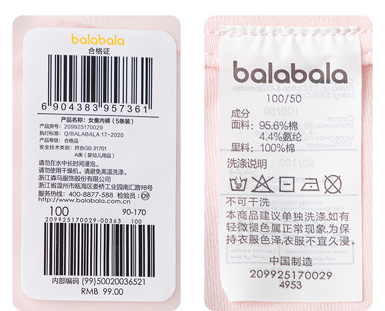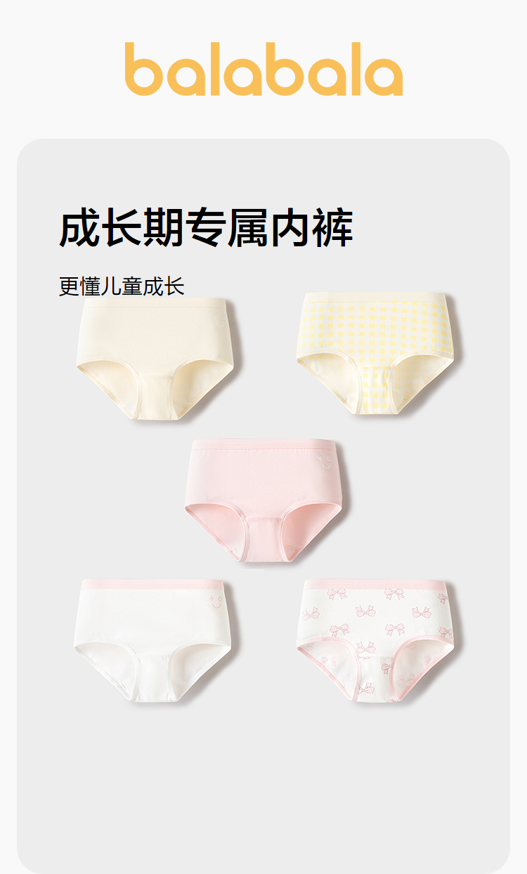巴拉巴拉儿童内裤棉三角短裤女童弹力亲肤萌中幼童不夹PP五条装