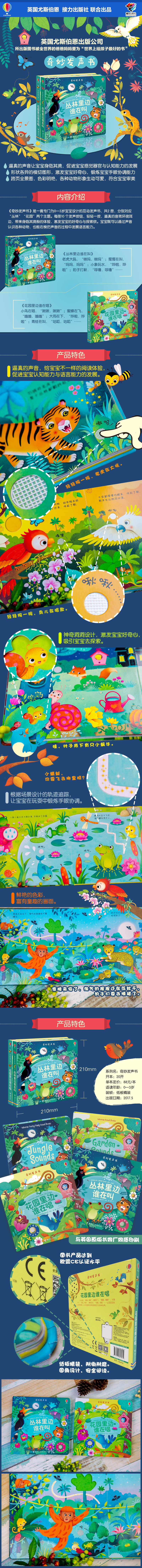 《奇妙发声书 花园里边谁在唱》 是一套专门为0~3 岁宝宝设计的互动发声书。书中包含10个发声按钮,轻轻一按,逼真的音效环绕耳边,带来身临其境般的体验,激发宝宝的好奇心与探索欲。让宝宝通过倾听声音辨识动物,通过模仿声音促进语言能力的发展。
