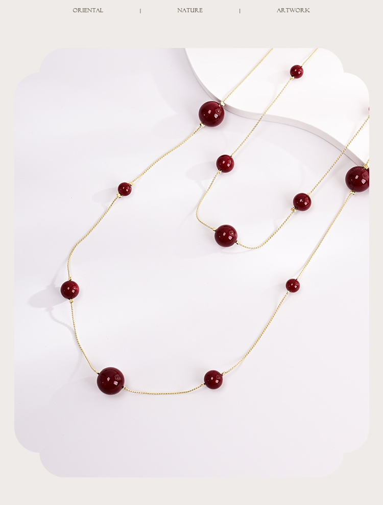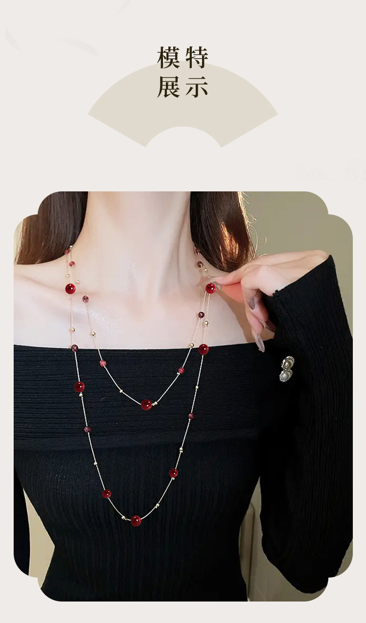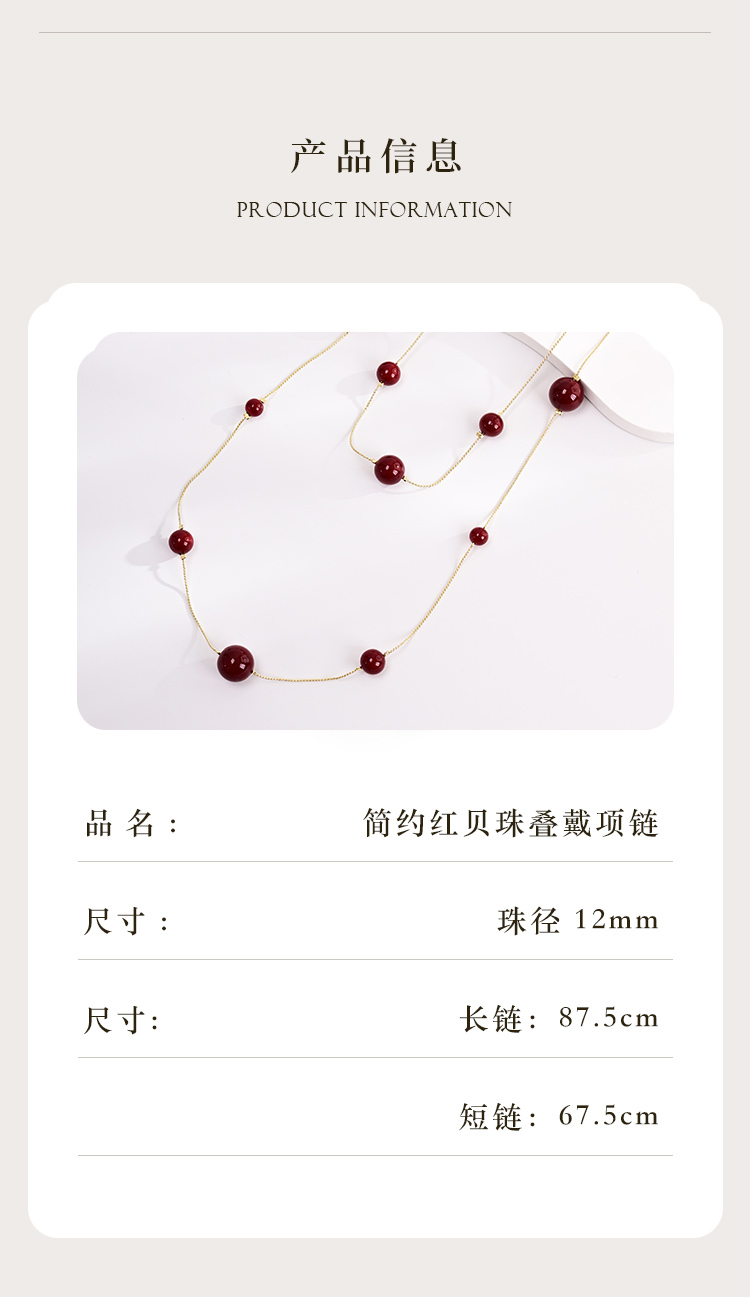 yszz-11001法式安可拉红琉璃贝珠双圈项链-RJ022