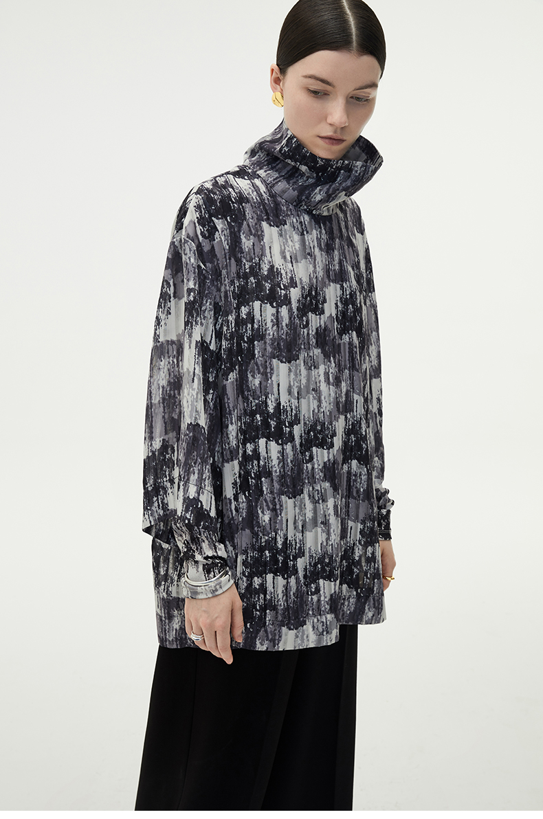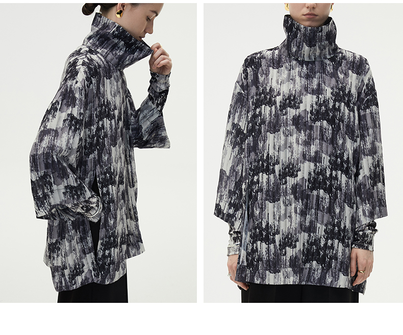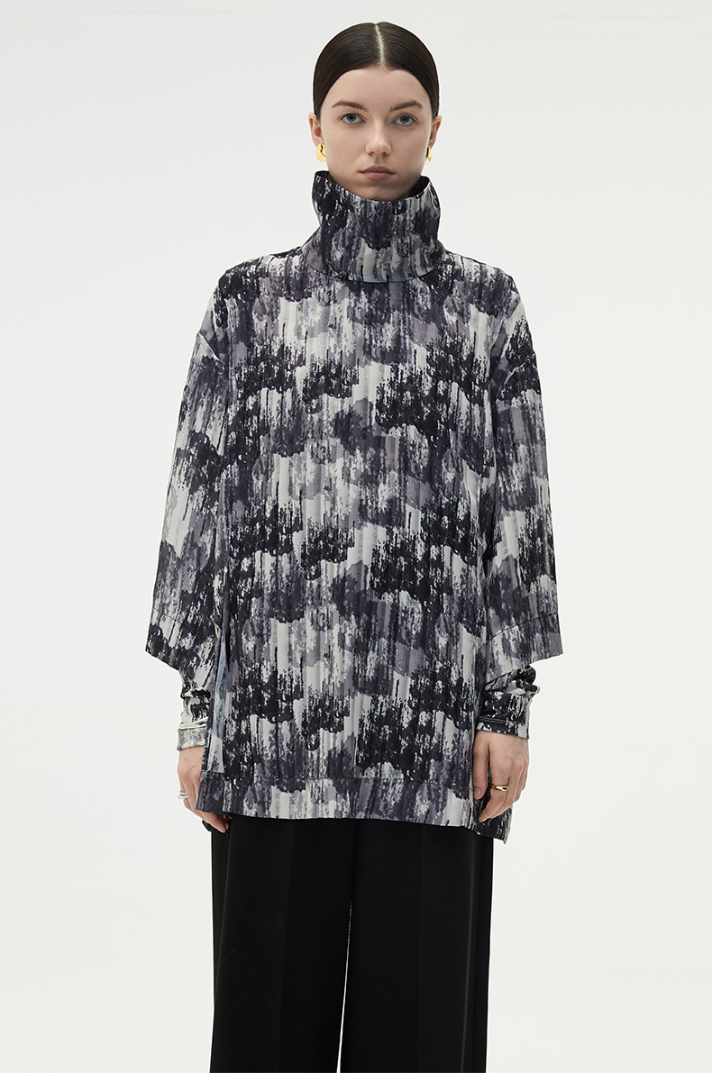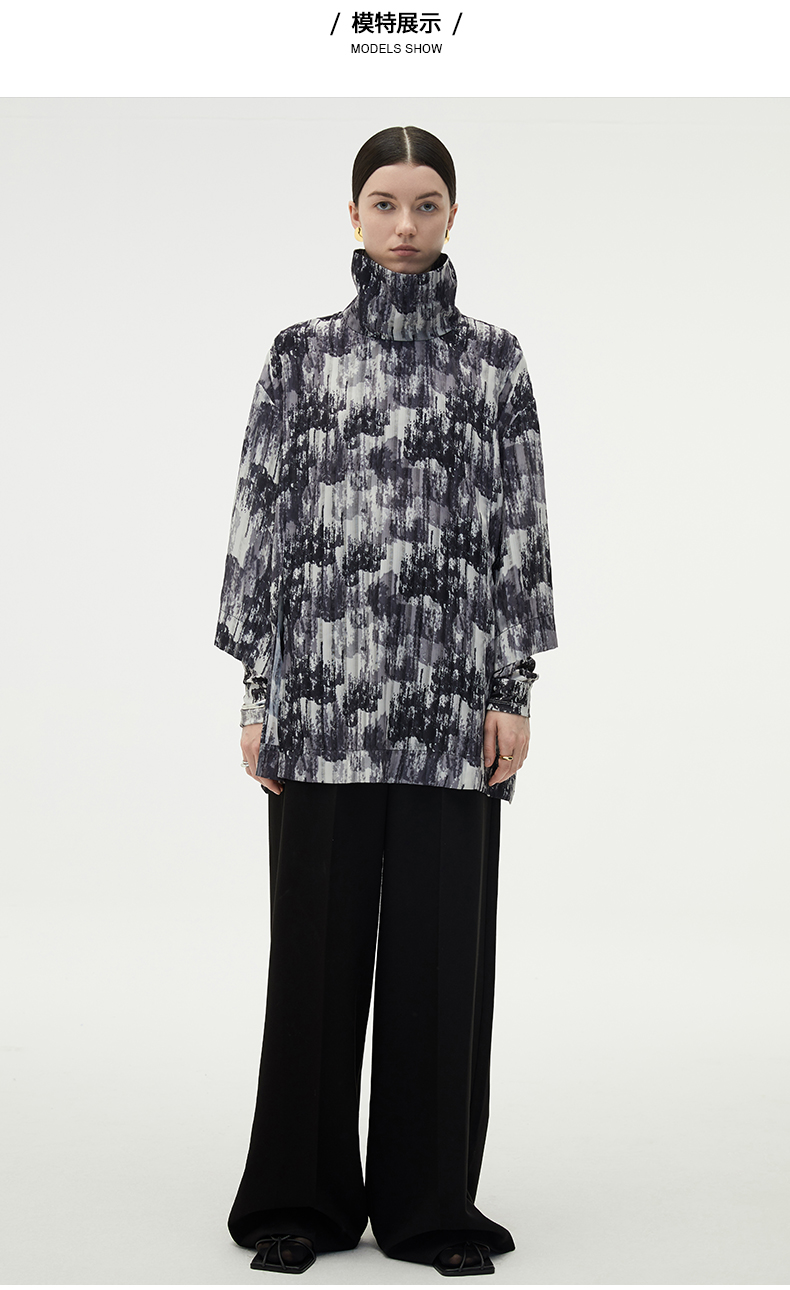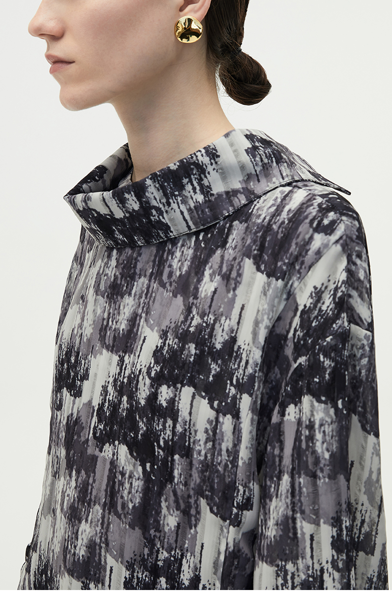 HIDEMI 艺术感印花立领上衣