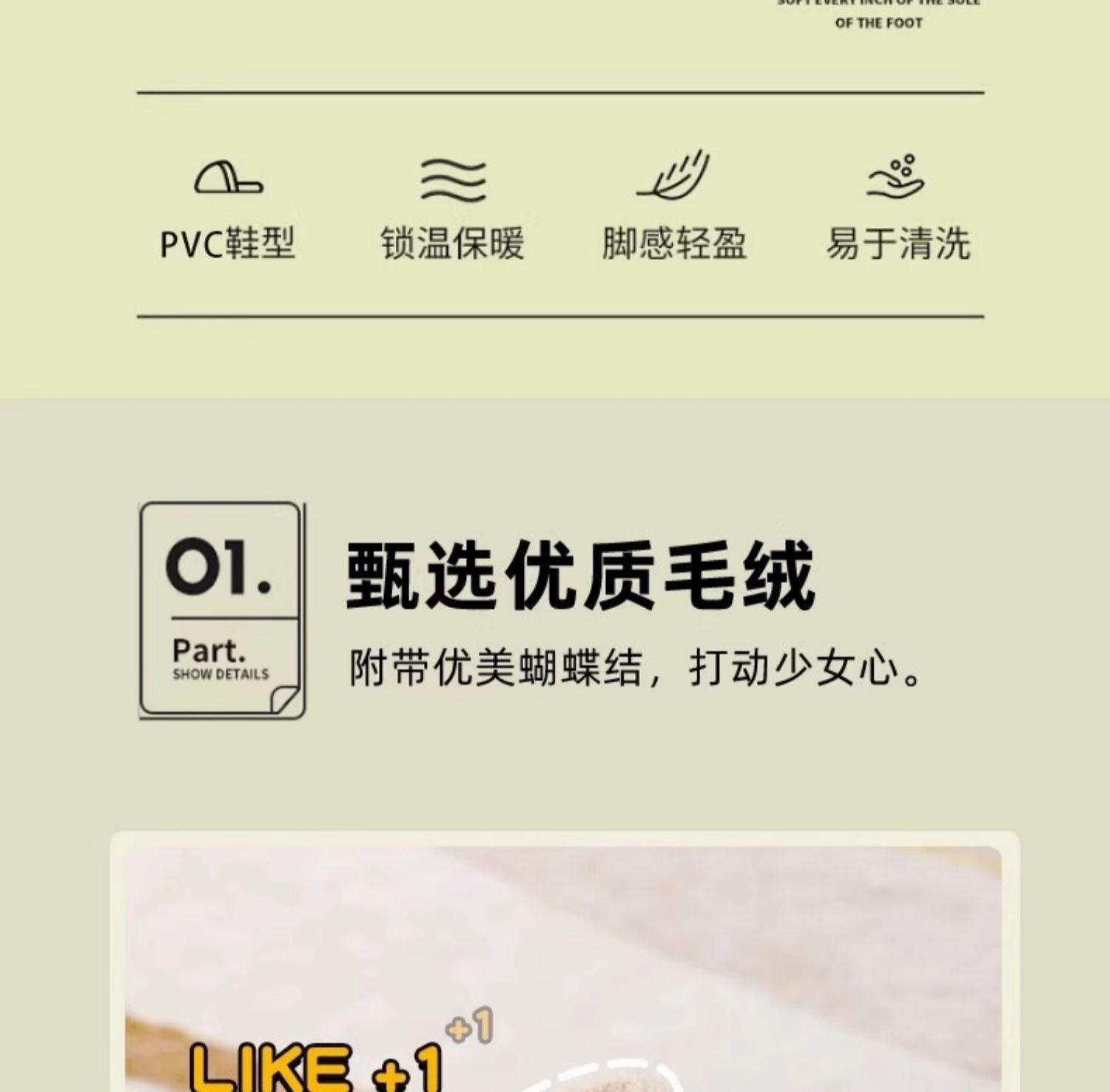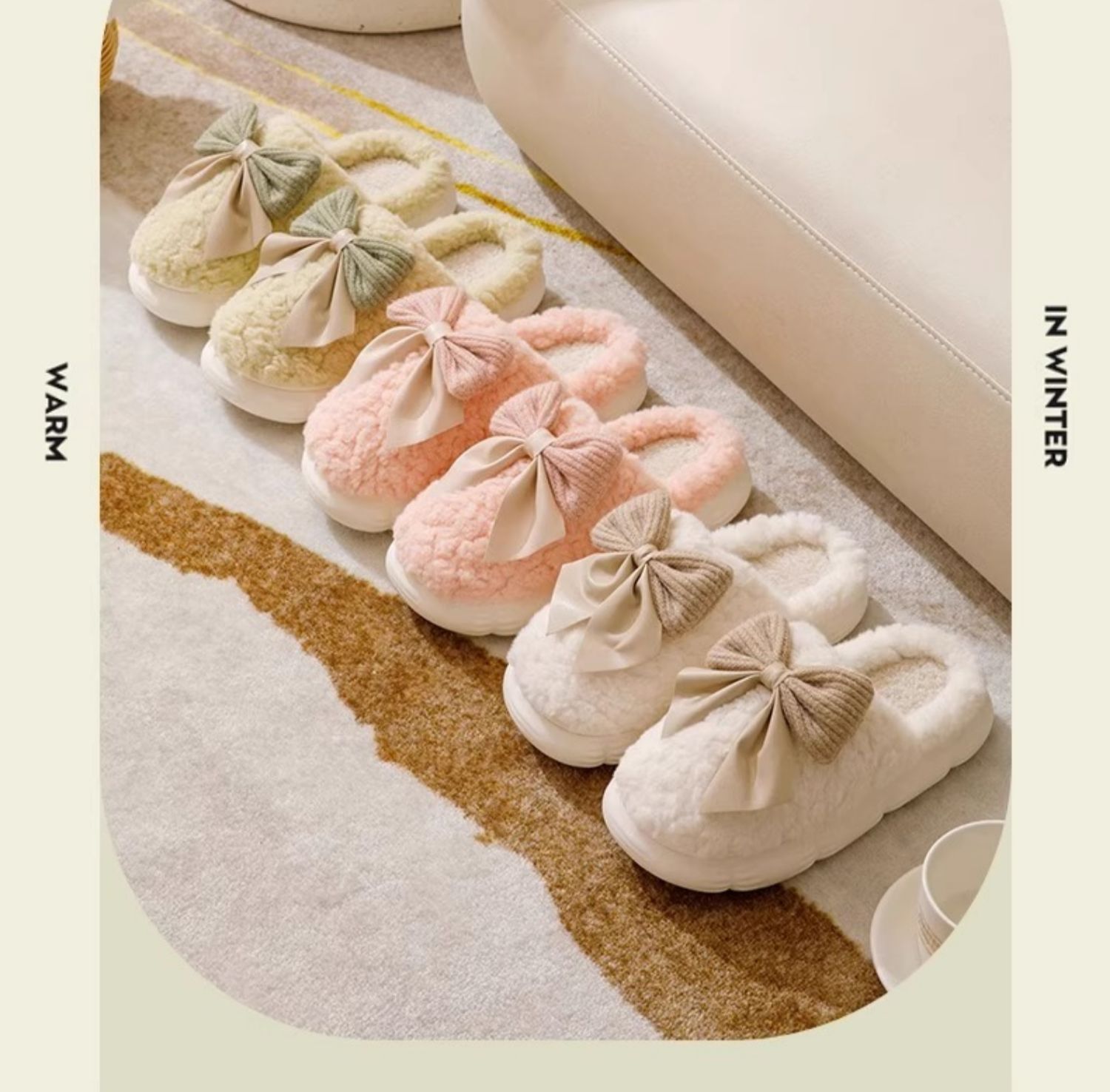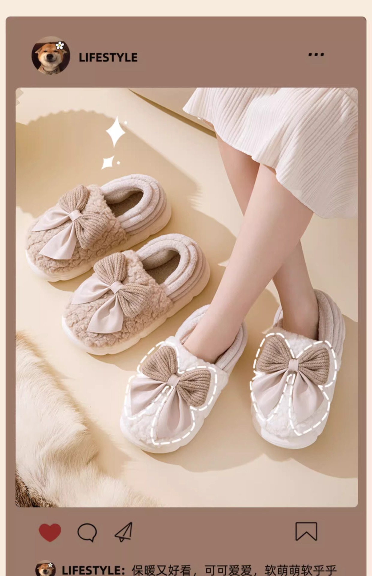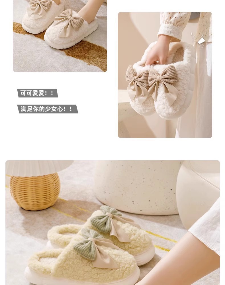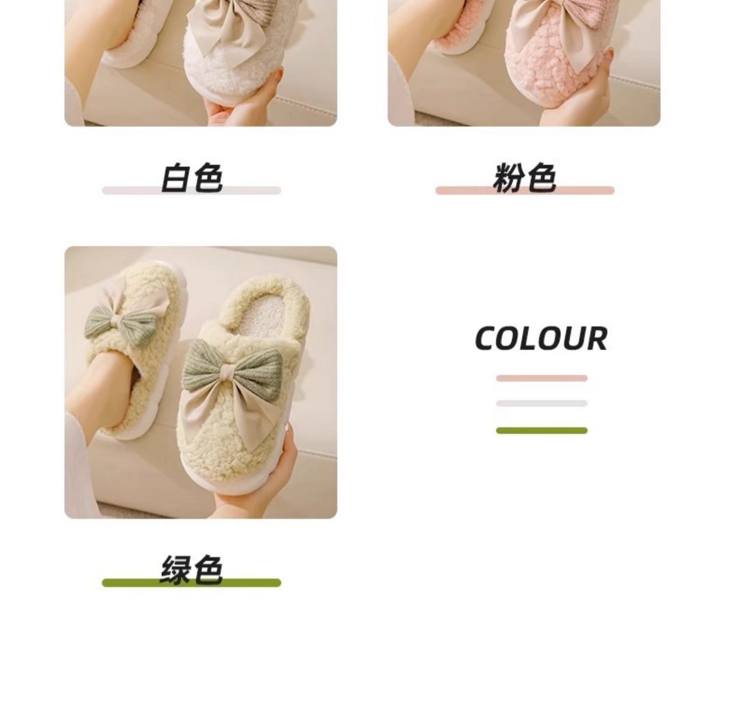 【炒鸡好看!加厚毛绒保暖】新款棉拖鞋男女冬季蝴蝶结厚底居家毛毛拖室内保暖加绒厚底。rc