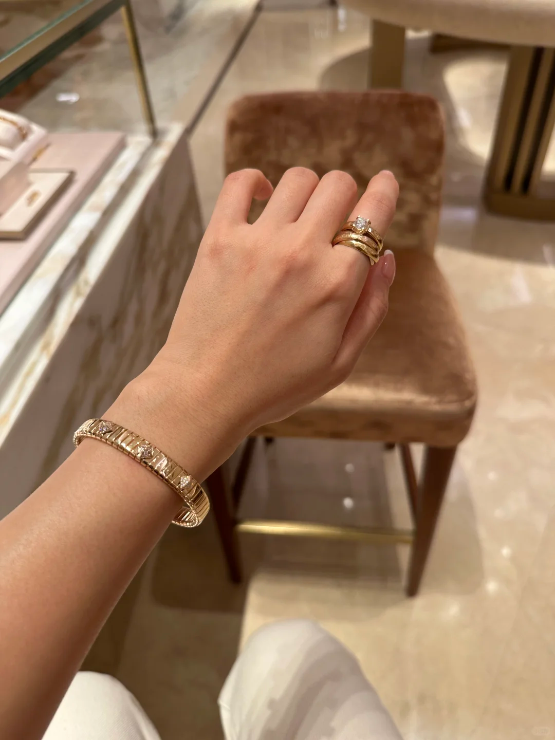 建议净手围18以内的姐妹配戴,偏圆的贵妃镯型。