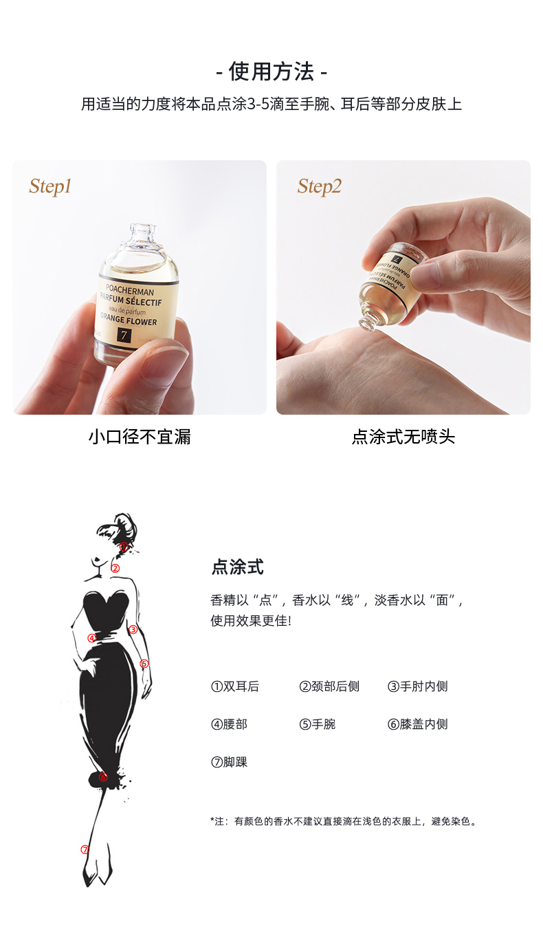 柏世曼香水旅行装7ml 点涂式涂抹式香水奶香檀香茉莉花橘香薄荷味香水