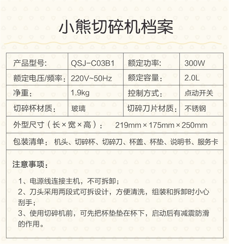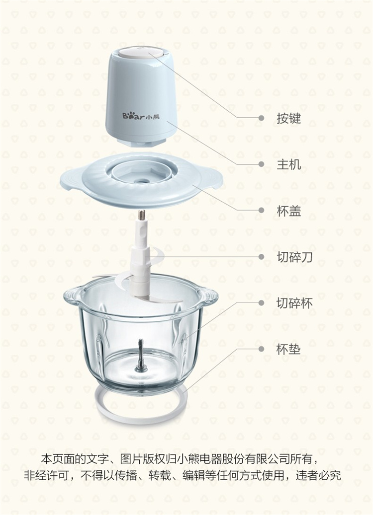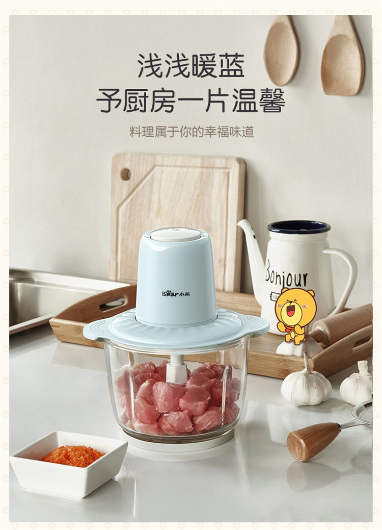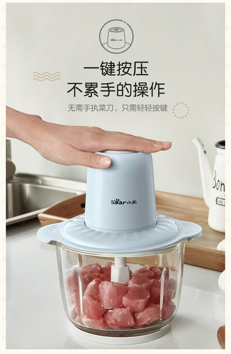 小熊(Bear)绞肉机家用电动玻璃多能料理机绞馅机碎肉打肉机切菜搅拌机QSJ-C03B1