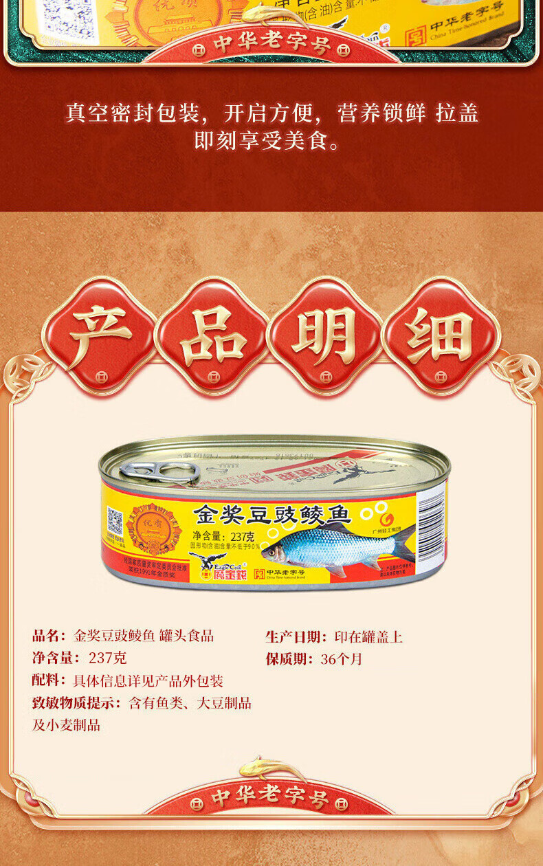 鹰金钱牌拉盖金装豆豉鲮鱼(互联网专销)237g