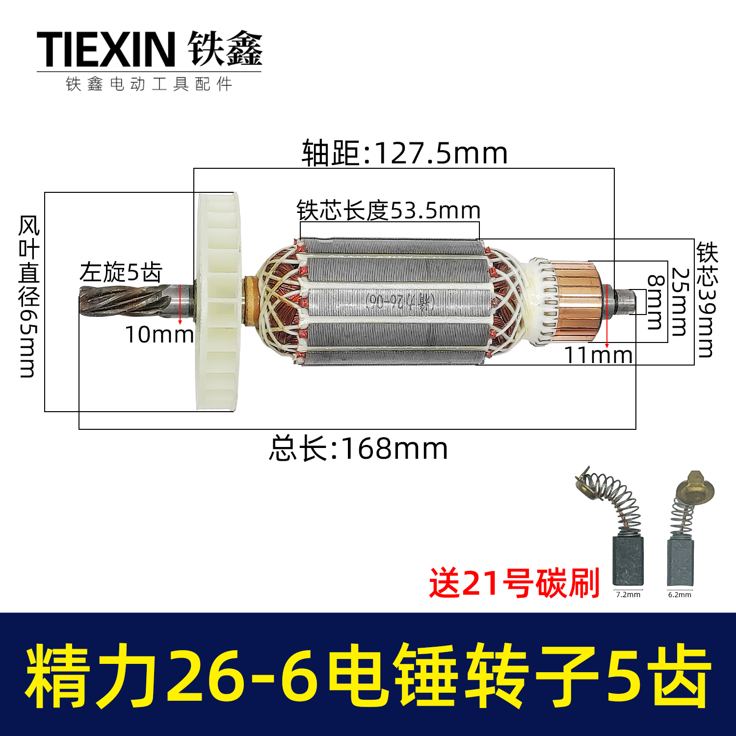 【货号02485】精力26-6电锤转子5齿电机坦克雷亚创造虎豪冲击钻转子
