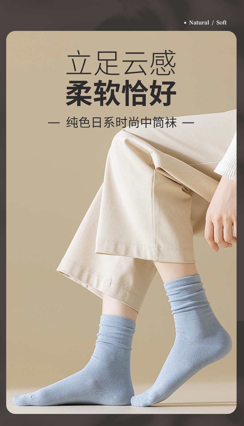 【YW】无忧购(35元10双)中筒百搭月子袜/纯色堆堆袜8051(截单后7天发货)