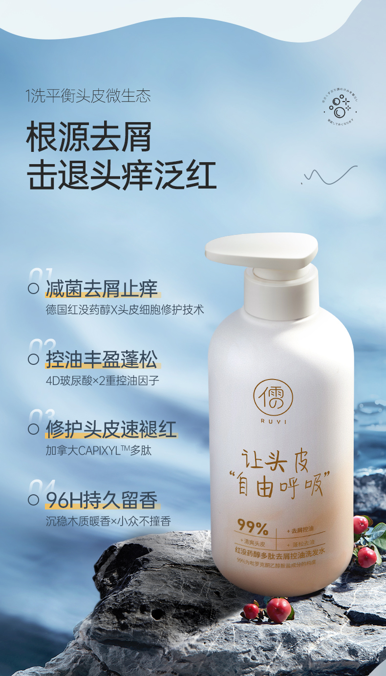 【第二瓶半价】儒意红没药醇洗发水去屑zhi痒控油蓬松洗头膏洗发露女男士专用
