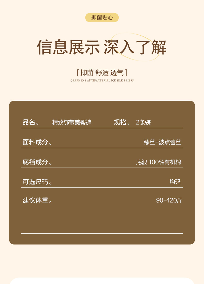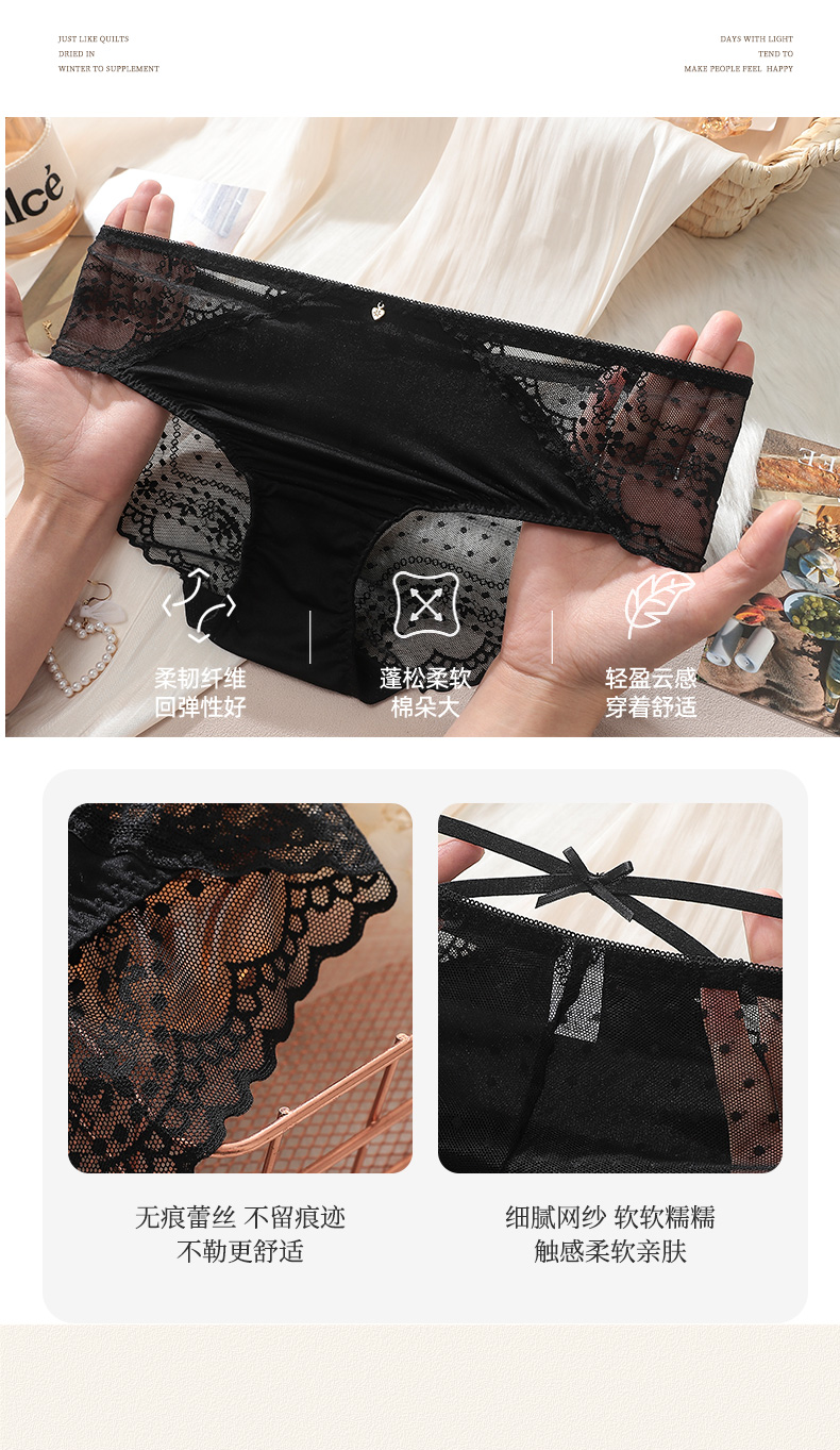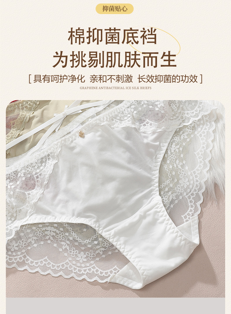 精致绑带美臀裤2条装 性感列维斯蕾丝 轻盈臻丝 100%有机棉抗菌抑菌 内裤性感底裤