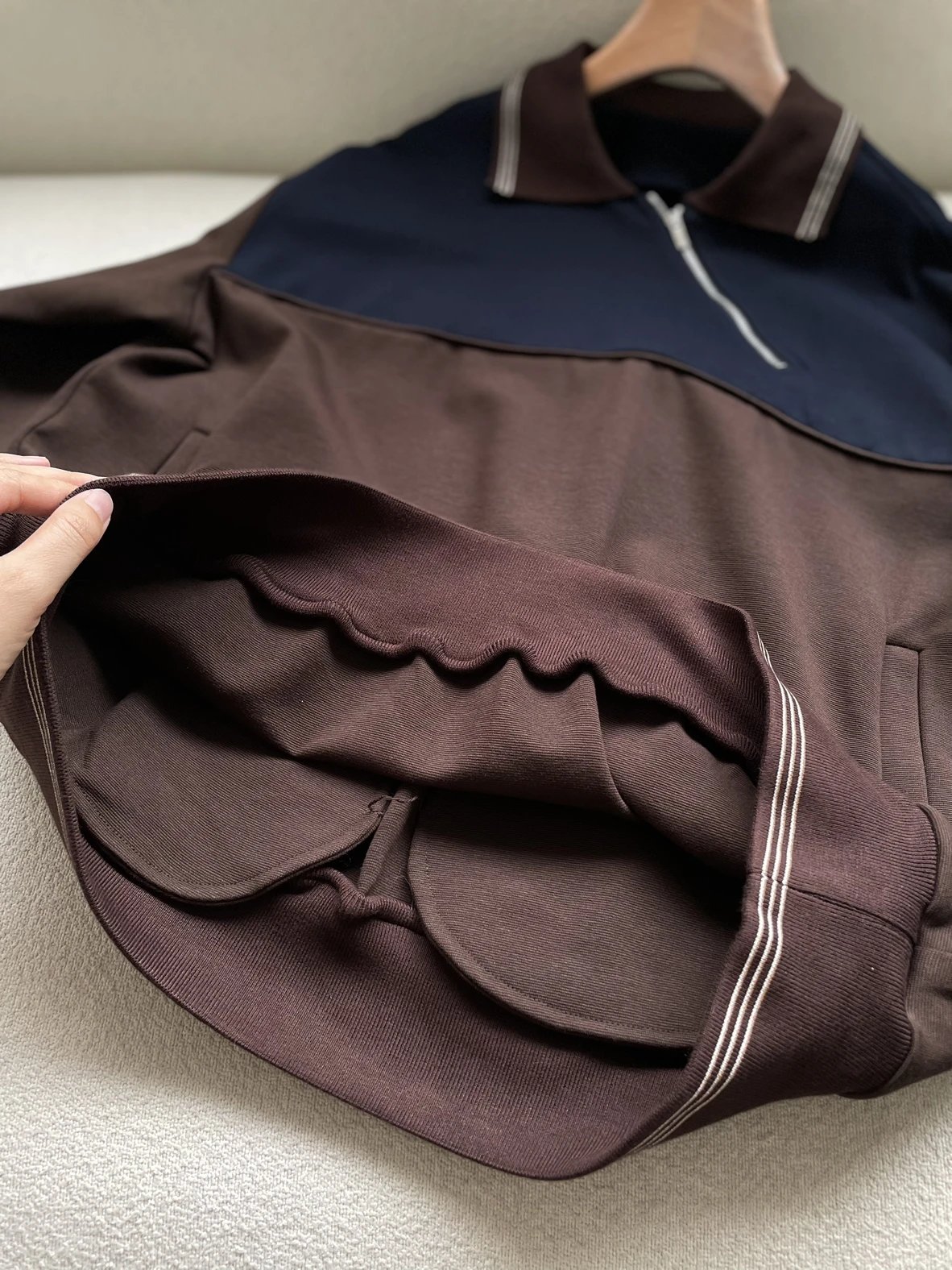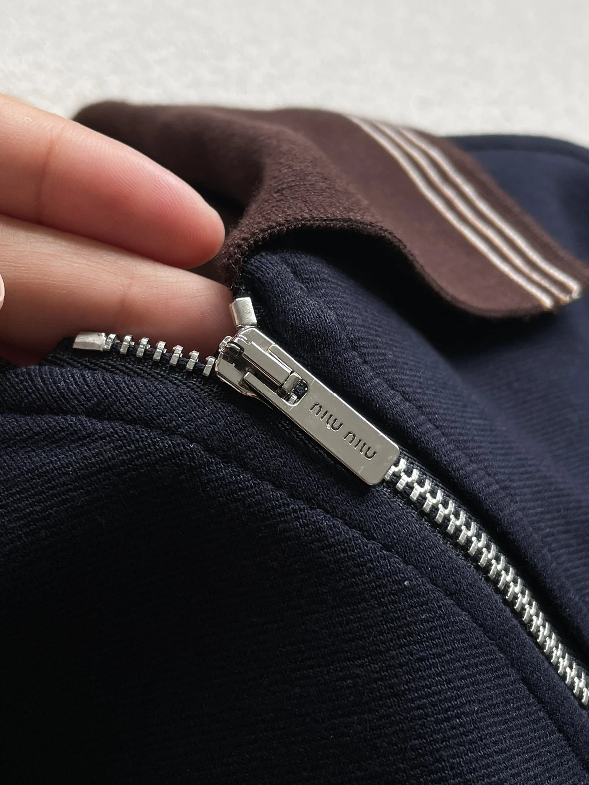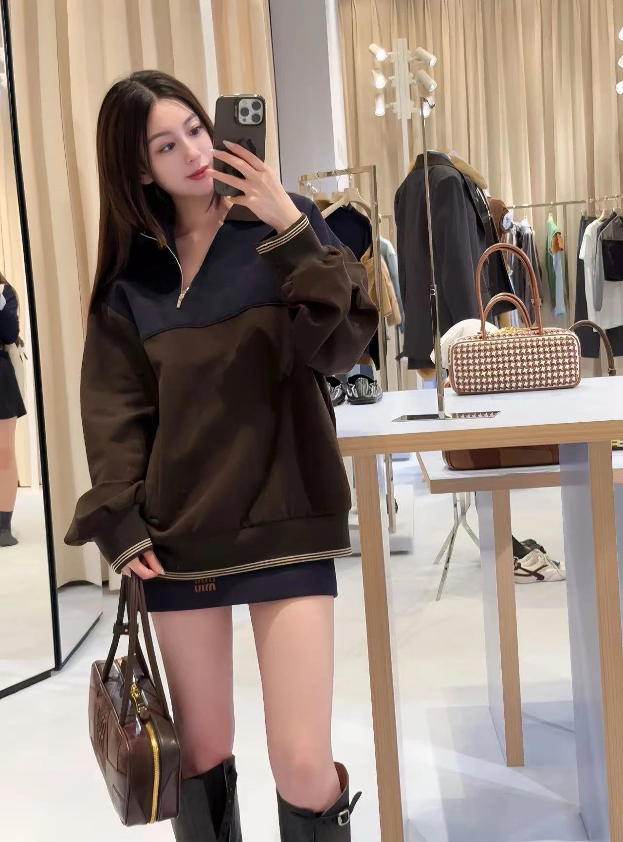 双11福利款 miu斜开领可可卫衣 撞色拼接 版拉链卫衣 复古又减龄