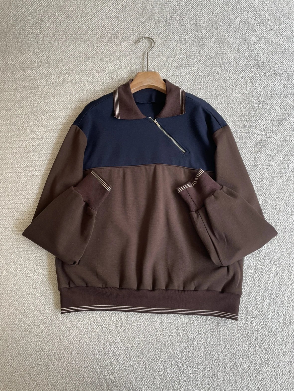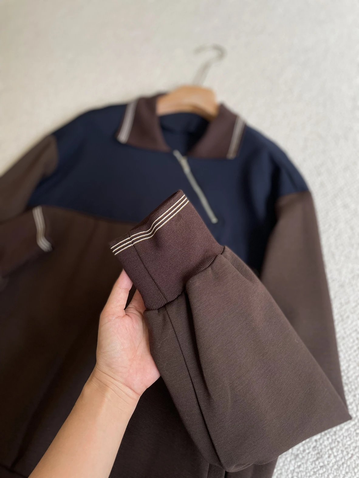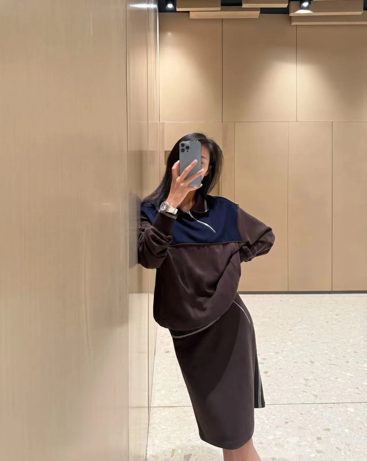双11福利款 miu斜开领可可卫衣 撞色拼接 版拉链卫衣 复古又减龄