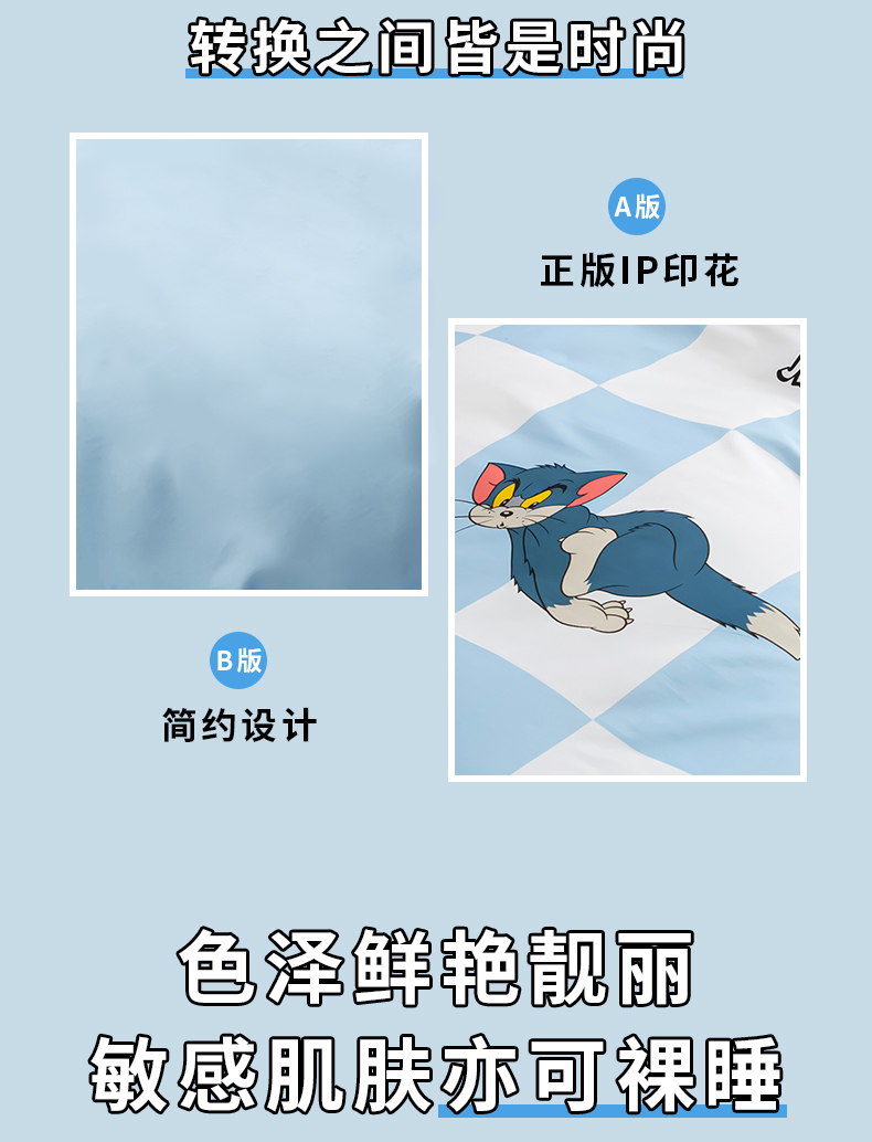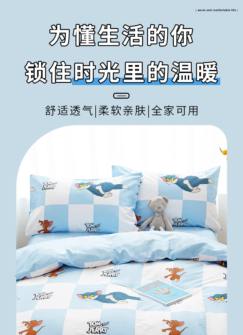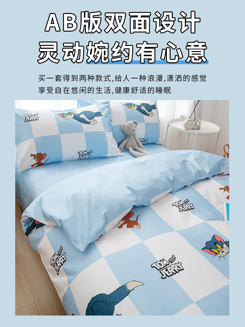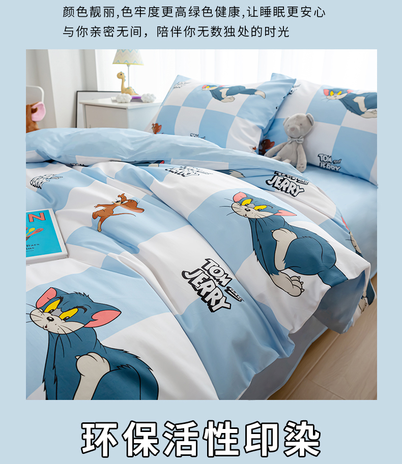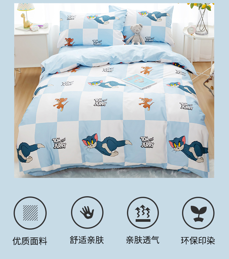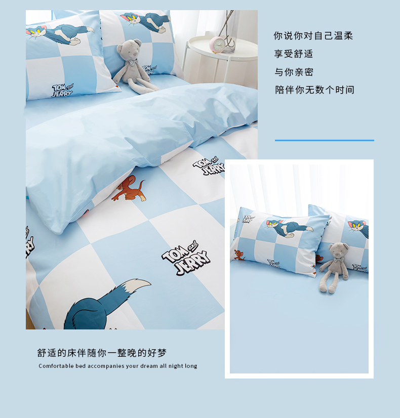 Tom and Jerry 纯棉四件套-蓝白方格LBFG4JT