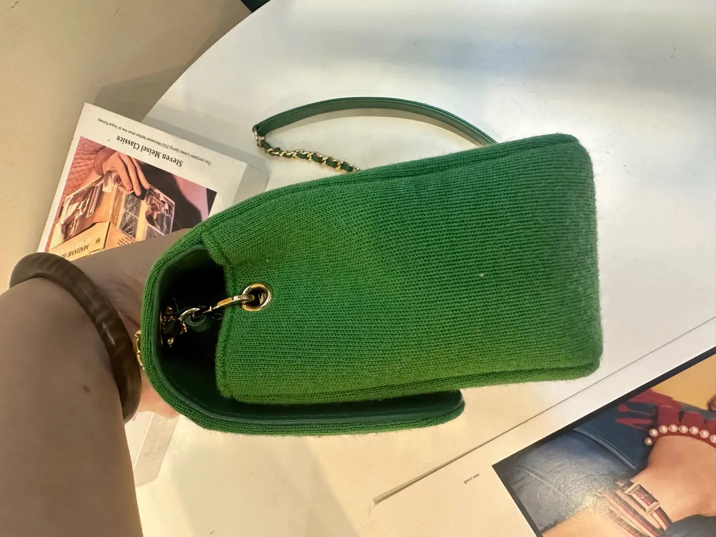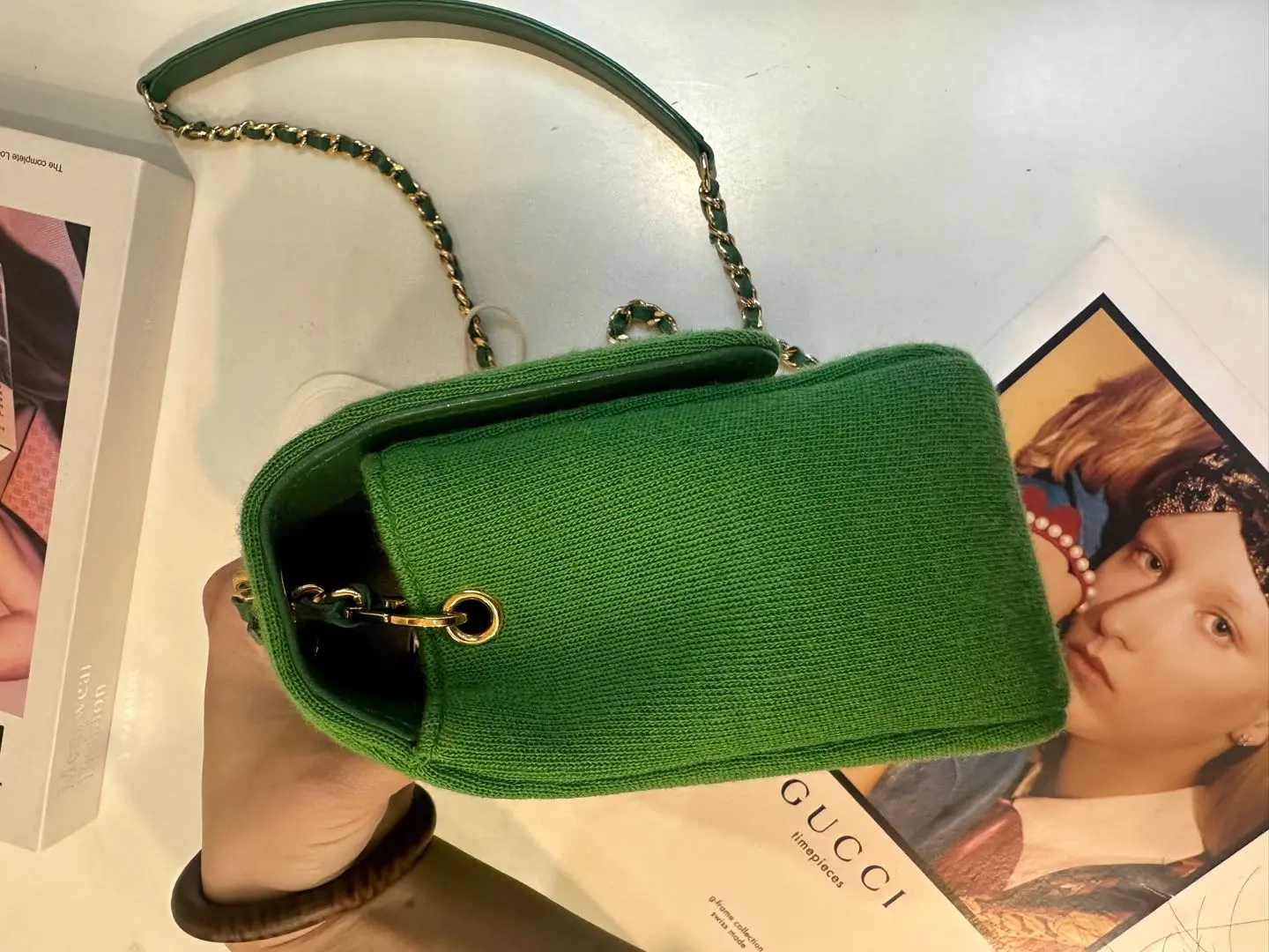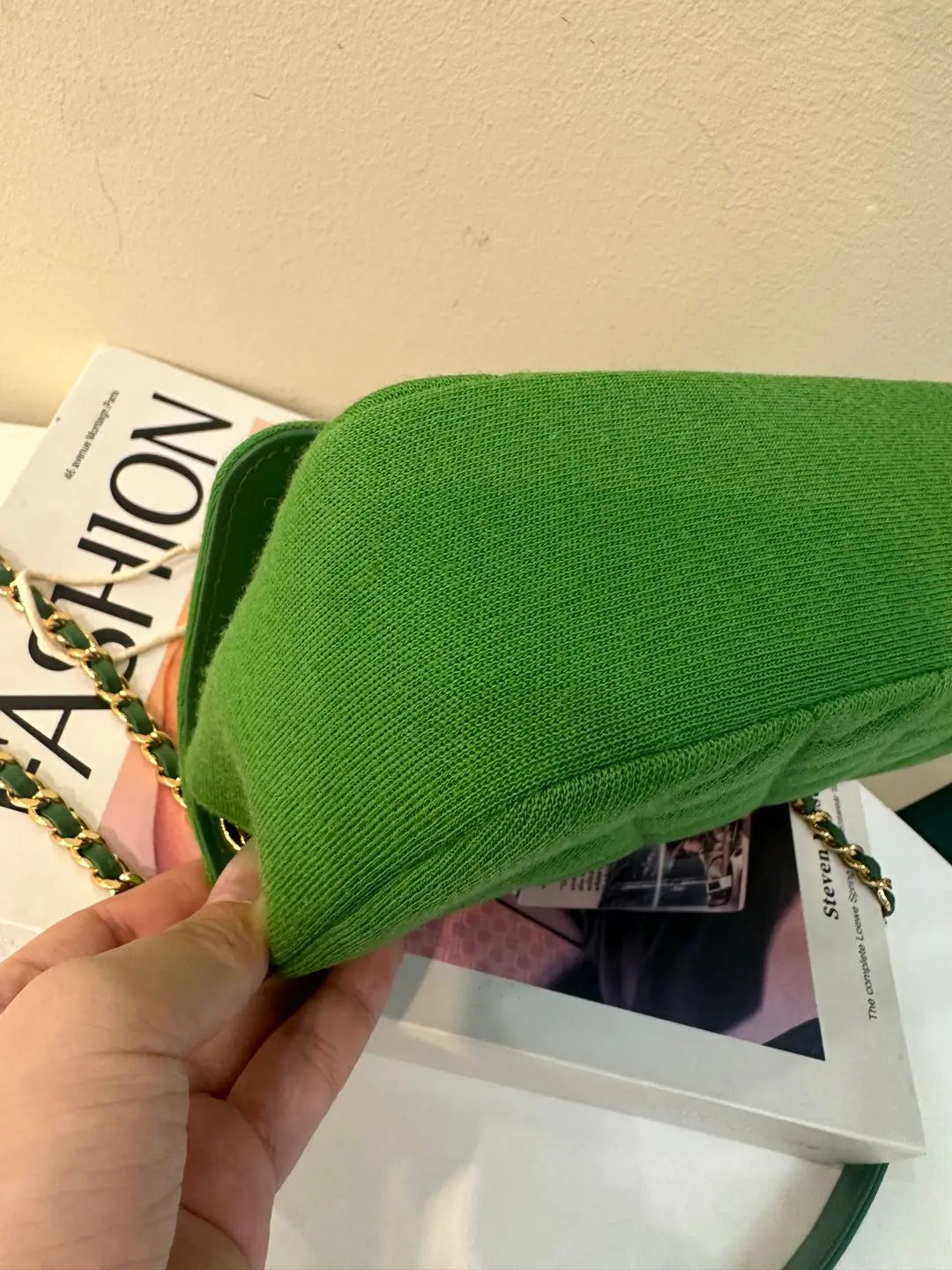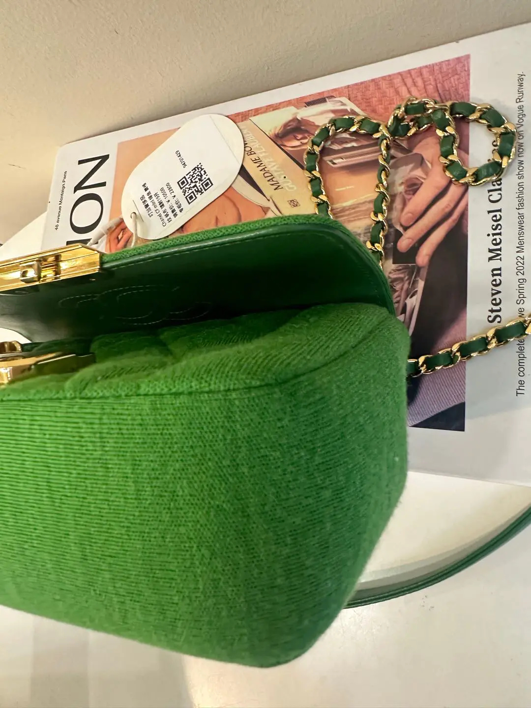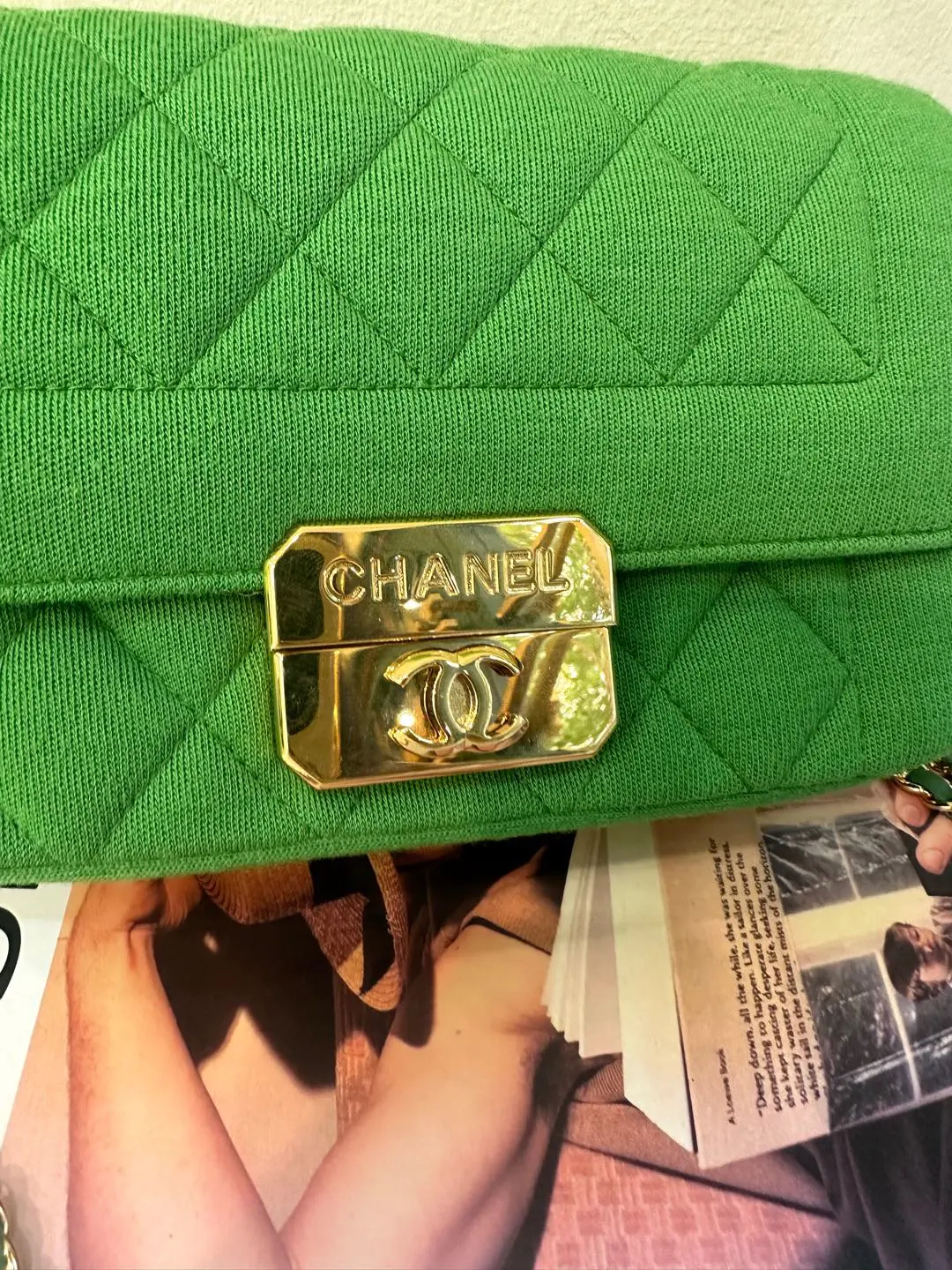 【商品详情】正品二手 Chanel Jersey 针织 绿色 mini 金扣 单肩包💙 95新 19×12 镭射19开 配件:卡。金属正常使用感。针织搭配金属刚柔并重 这个系列最好看的是绿色
